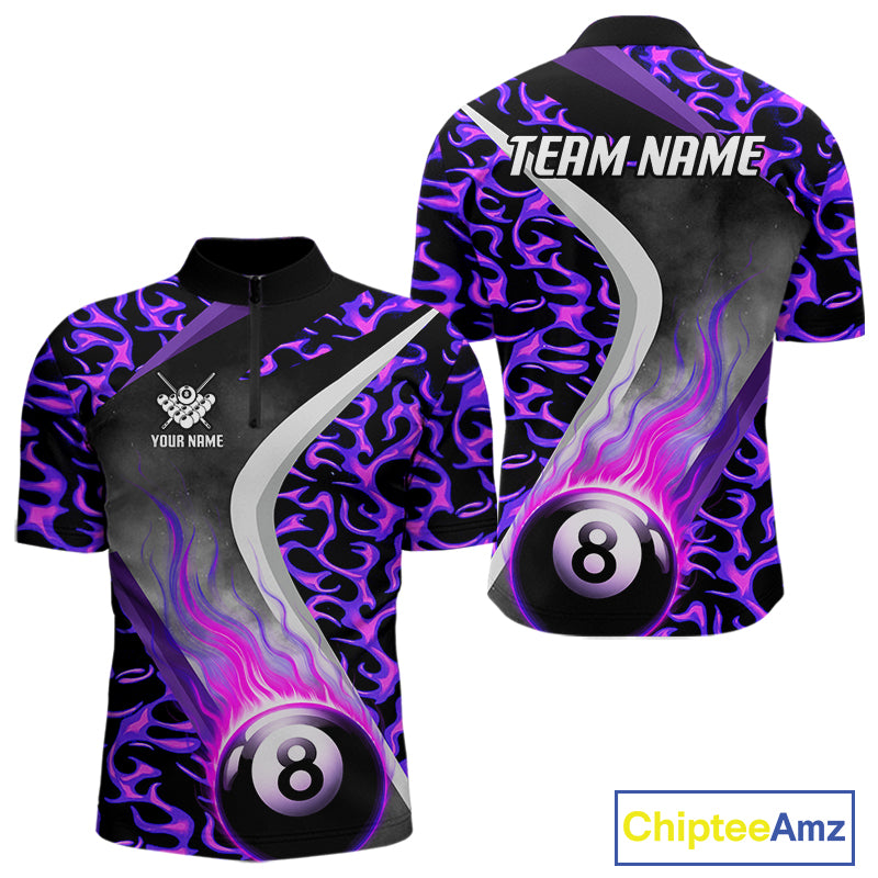 Personalized Flame Purple 8 Ball Pool Billiard Shirt For Men Custom Billiard Team Jerseys TDM4472