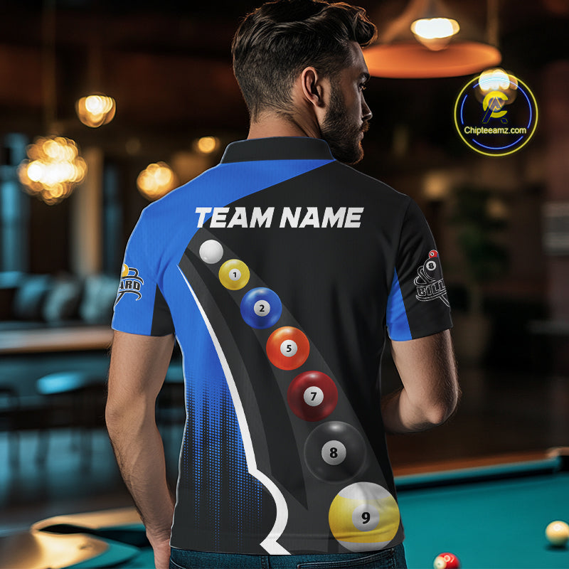 Personalized Black Blue Billiard Shirt For Men Custom Funny Pool Balls Team Jersey Polo & 1/4 Zip TDM4497