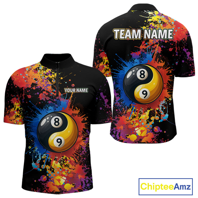 Colorful Billiard Jersey For Men Custom Funny Yin-Yang 8&9 Ball Pool Team Shirts Polo & 1/4 Zip TDM4574