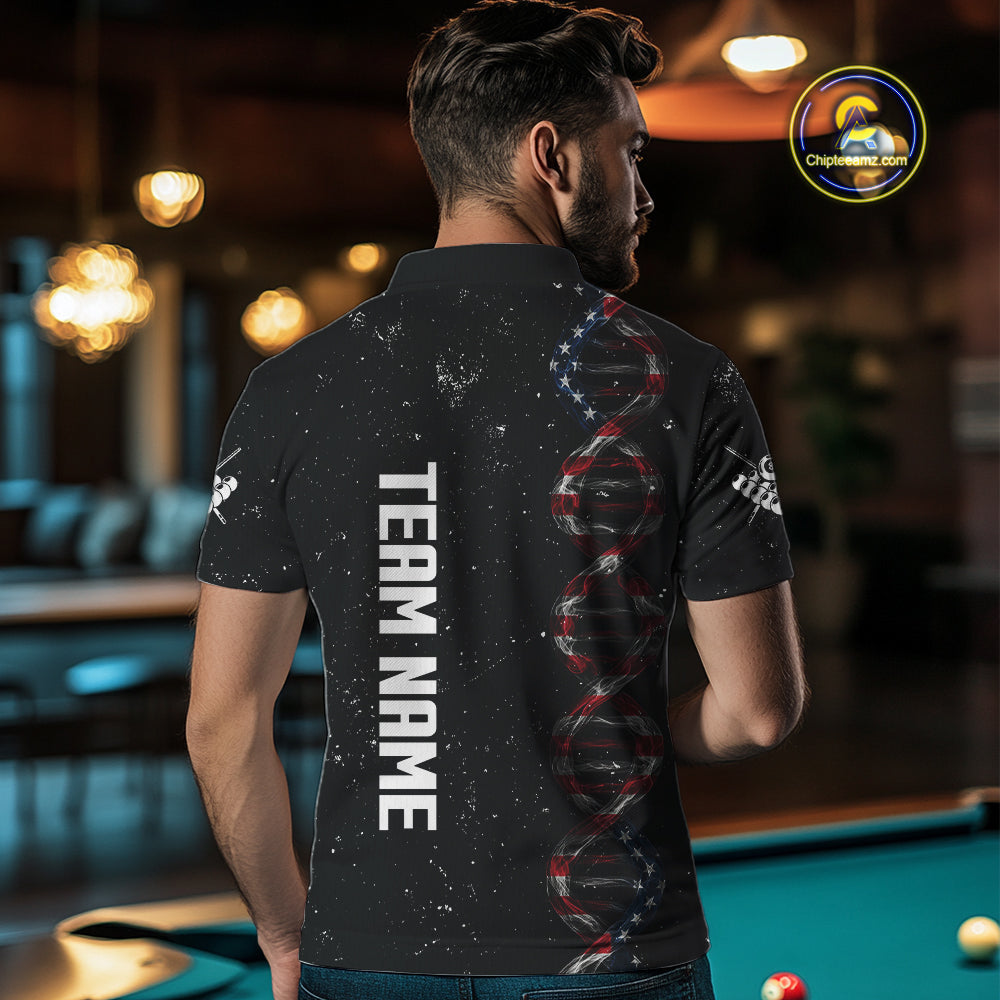 Men's Custom DNA American Flag Smoke 8 Ball Billiard Shirt, Patriotic Pool Jersey Polo & 1/4 Zip TDM4627