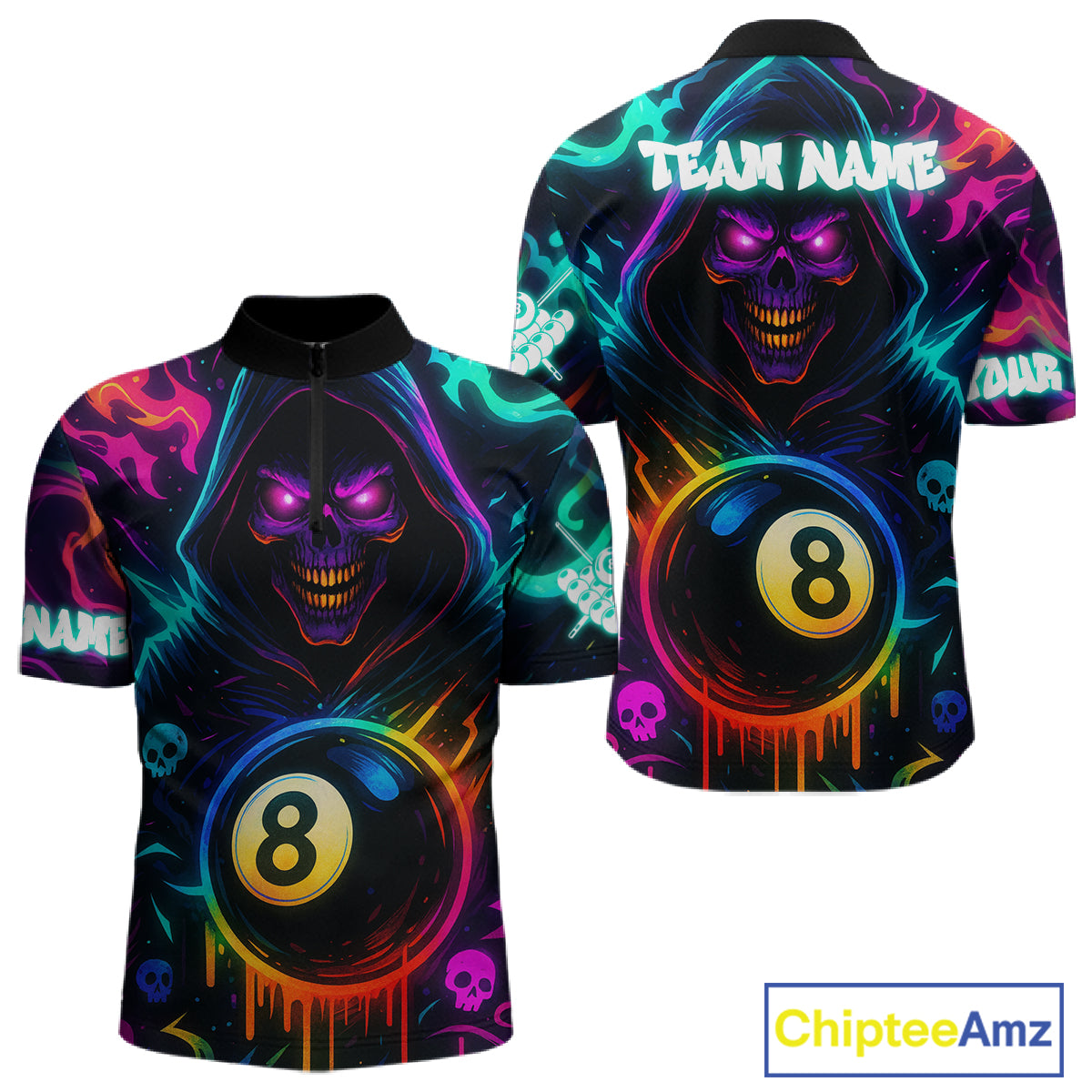 Colorful Neon Grim Reaper 8 Ball Pool Billiard Shirt For Men Custom Billiard Team Jersey TDM4668