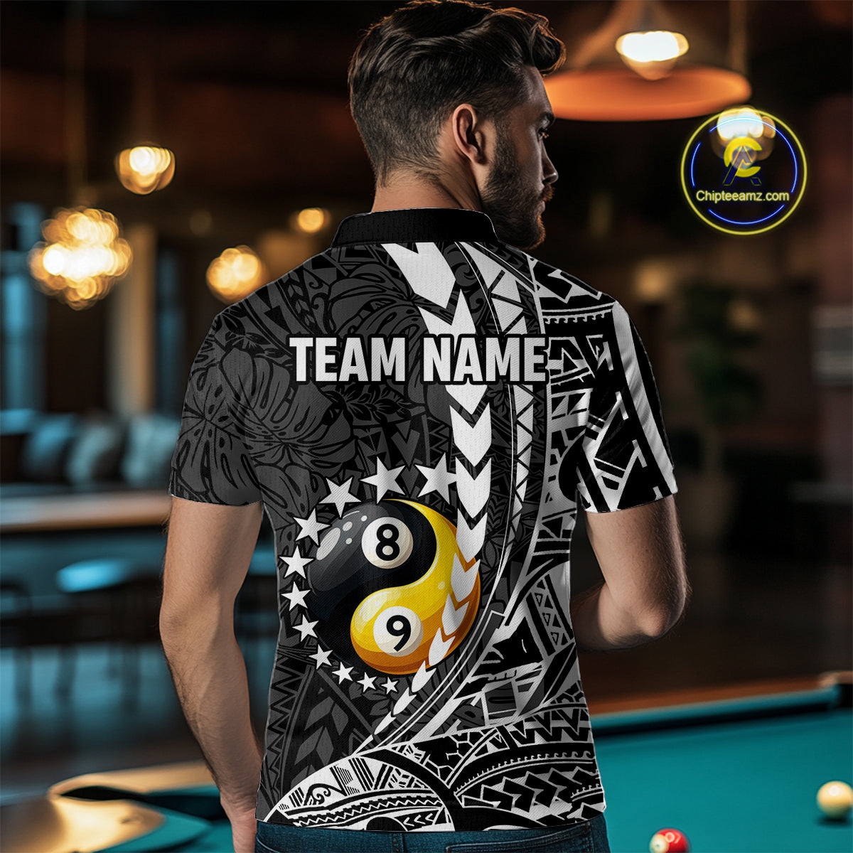 Custom White Black Tribal Yin-Yang 8 & 9 Ball Billiard Shirt For Men, Funny Pool Team Jersey TDM4687