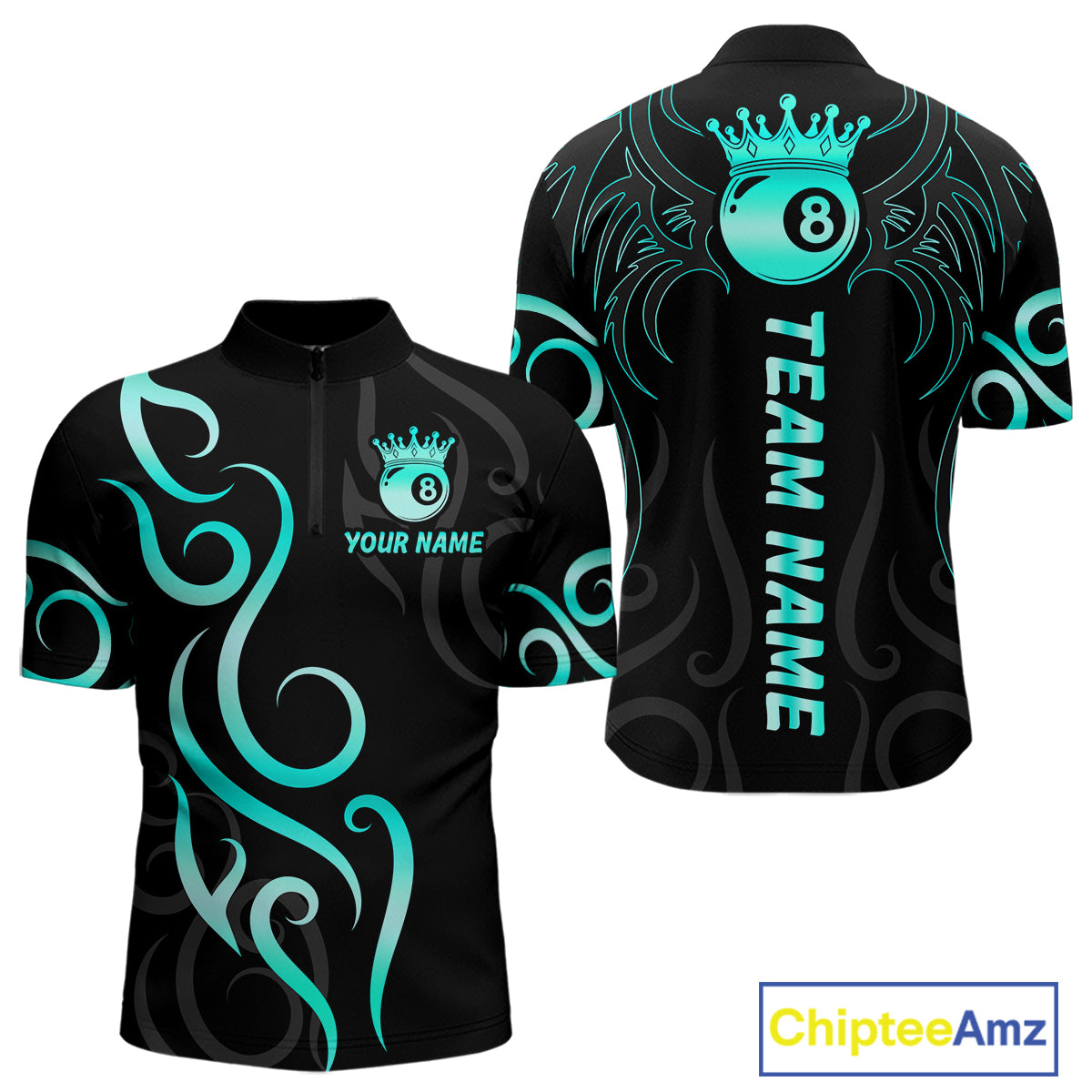 Black And Blue Cyan 8 Ball Crown Billiard Shirt For Men Custom Pool Team Jersey Polo & 1/4 Zip TDM4726
