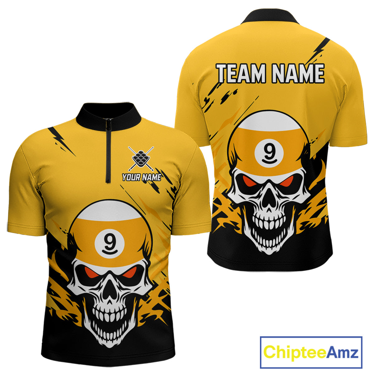 Personalized Yellow Black 9 Ball Skull Billiard Jersey For Men Custom Funny 9 Ball Pool Team Shirt TDM4732