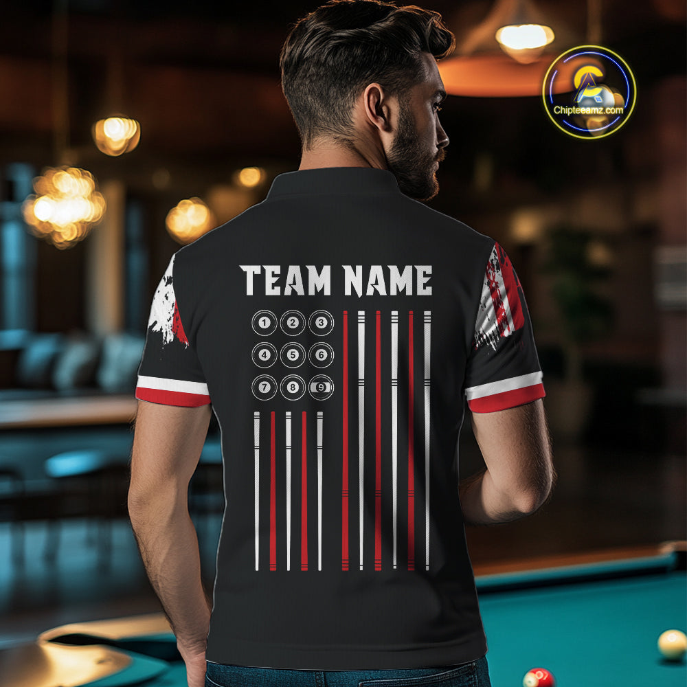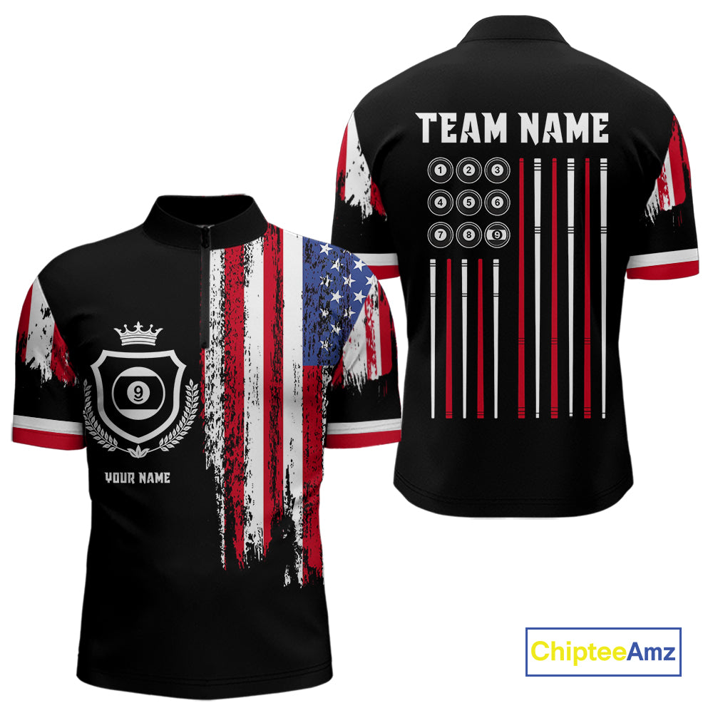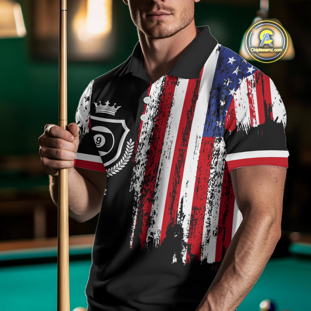 Personalized Grunge American Flag 9 Ball Pool Team Shirt For Men Custom Patriotic Billiard Shirts TDM4733