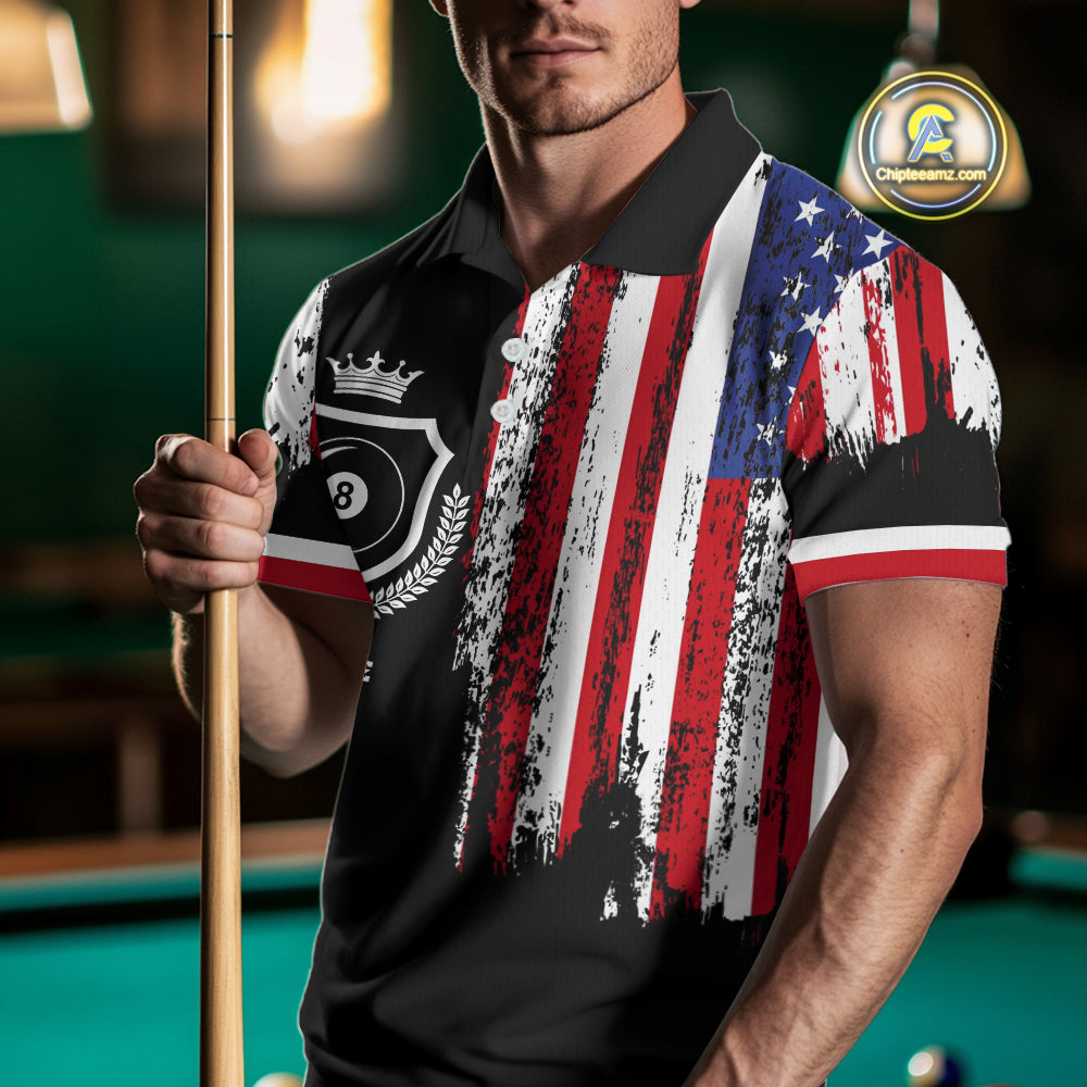 Personalized Grunge American Flag 9 Ball Pool Team Shirt For Men Custom Patriotic Billiard Shirts TDM4734