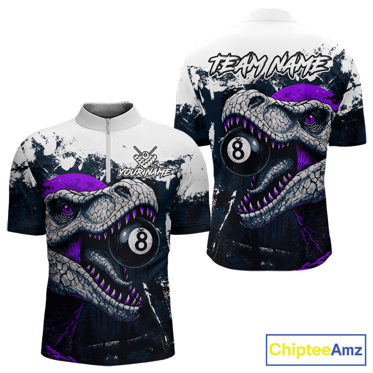 Personalized Dinosaur 8 Ball Billiard Shirt For Men Custom Billiard Team Shirt, Pool Jersey|Purple TDM4768