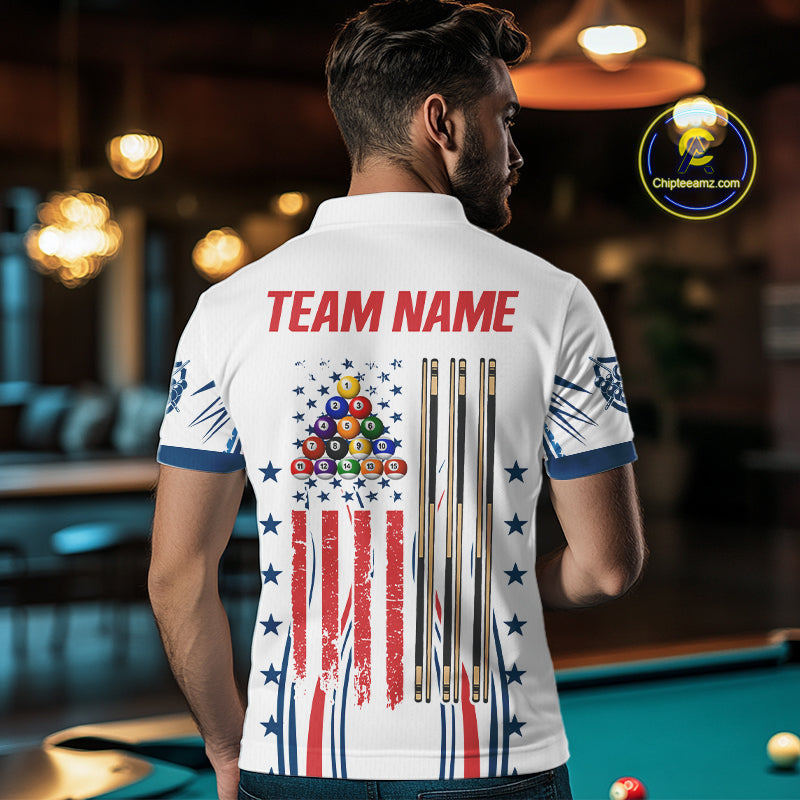 Patriotic American Flag 8 Ball Billiard Shirt For Men Custom Pool Team Jerseys Polo & Quarter Zip TDM4769