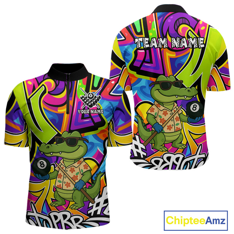 Funny Alligator Colorful Graffiti Style Custom 8 Ball Billiard Shirt For Men Best Pool Team Jersey TDM4780