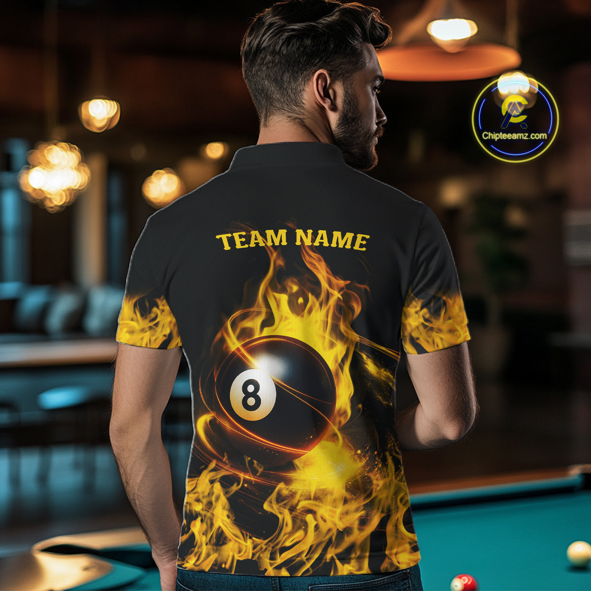 Yellow Flaming American Flag 8 Ball Billiard Shirt For Men Custom Patriotic Pool Team Jersey TDM4843