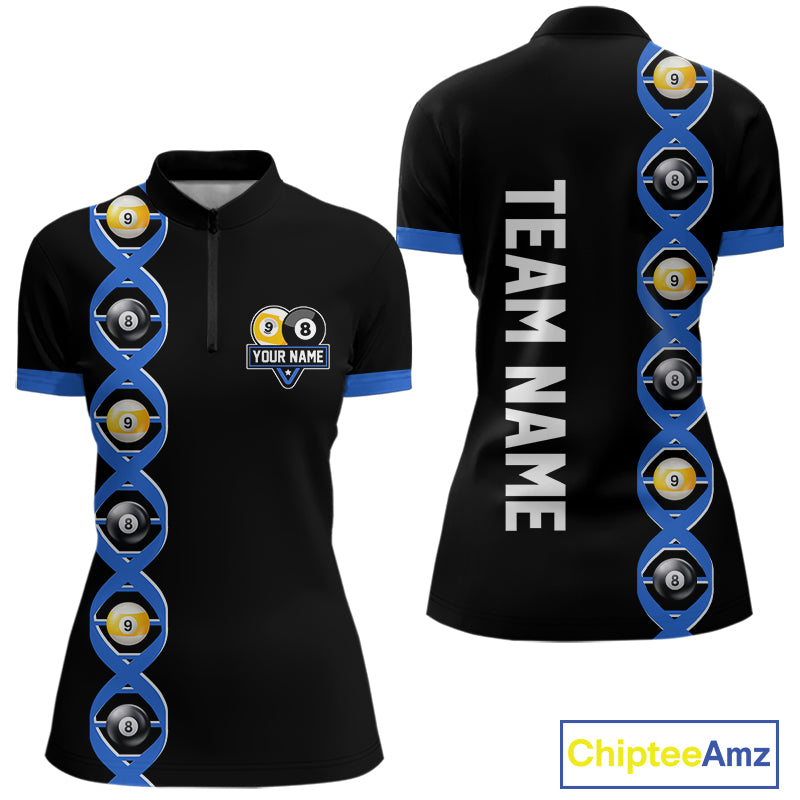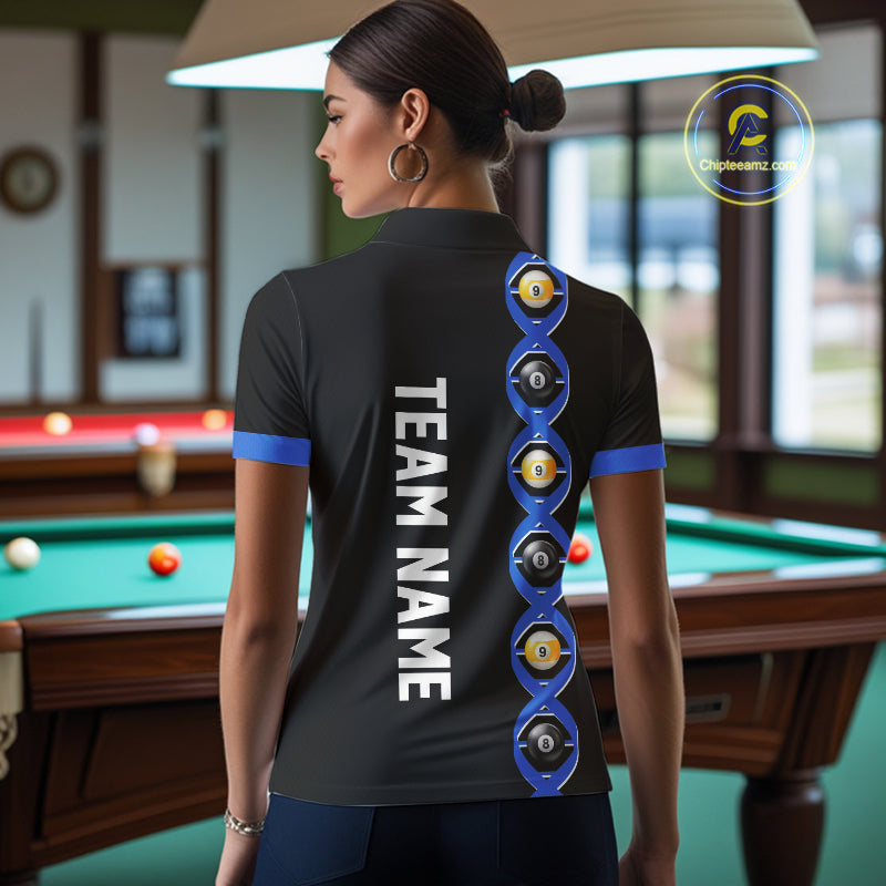 DNA Billiard 8 Ball & 9 Ball Shirts For Women Custom Funny Pool Jerseys Team Polo & 1/4 Zip |Blue TDM4391