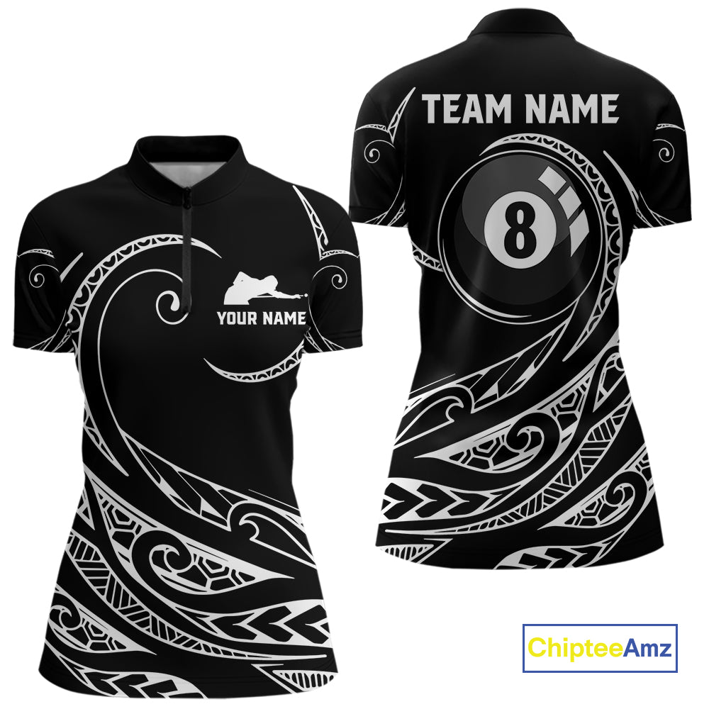 Black White 8 Ball Pool Tribal Billiard Shirt For Women Custom Billiard Team Jersey Polo & 1/4 Zip TDM4411