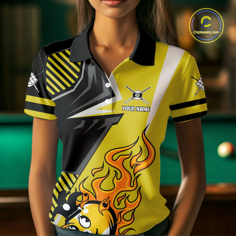 Personalized Yellow Black Funny 9 Ball Flame Billiard Shirt For Women Custom 9 Ball Pool Team Jersey TDM4455