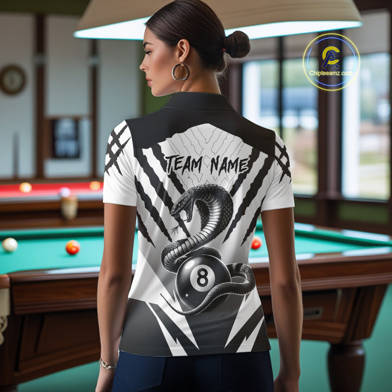 White Black Billiard Jersey Polo & 1/4 Zip Custom 8 Ball Cobra Snake Billiard Team Shirt For Women TDM4519