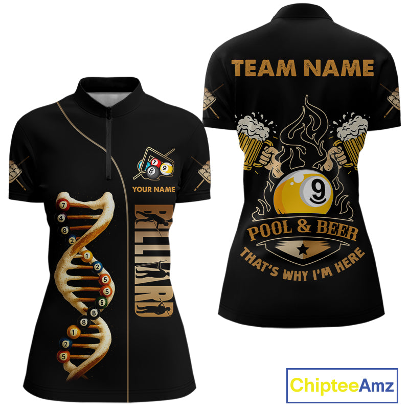 Funny DNA Billiard Shirt For Women Custom 9 Ball Pool & Beer That's Why I'M Here Team Jersey TDM4564