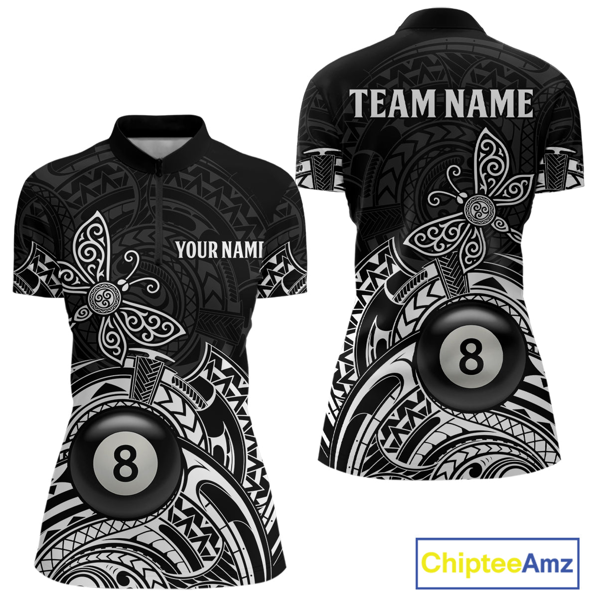 Custom White Black Tribal Dragonfly Billiard Shirts For Women | 8 Ball Pool Team Jerseys TDM4689