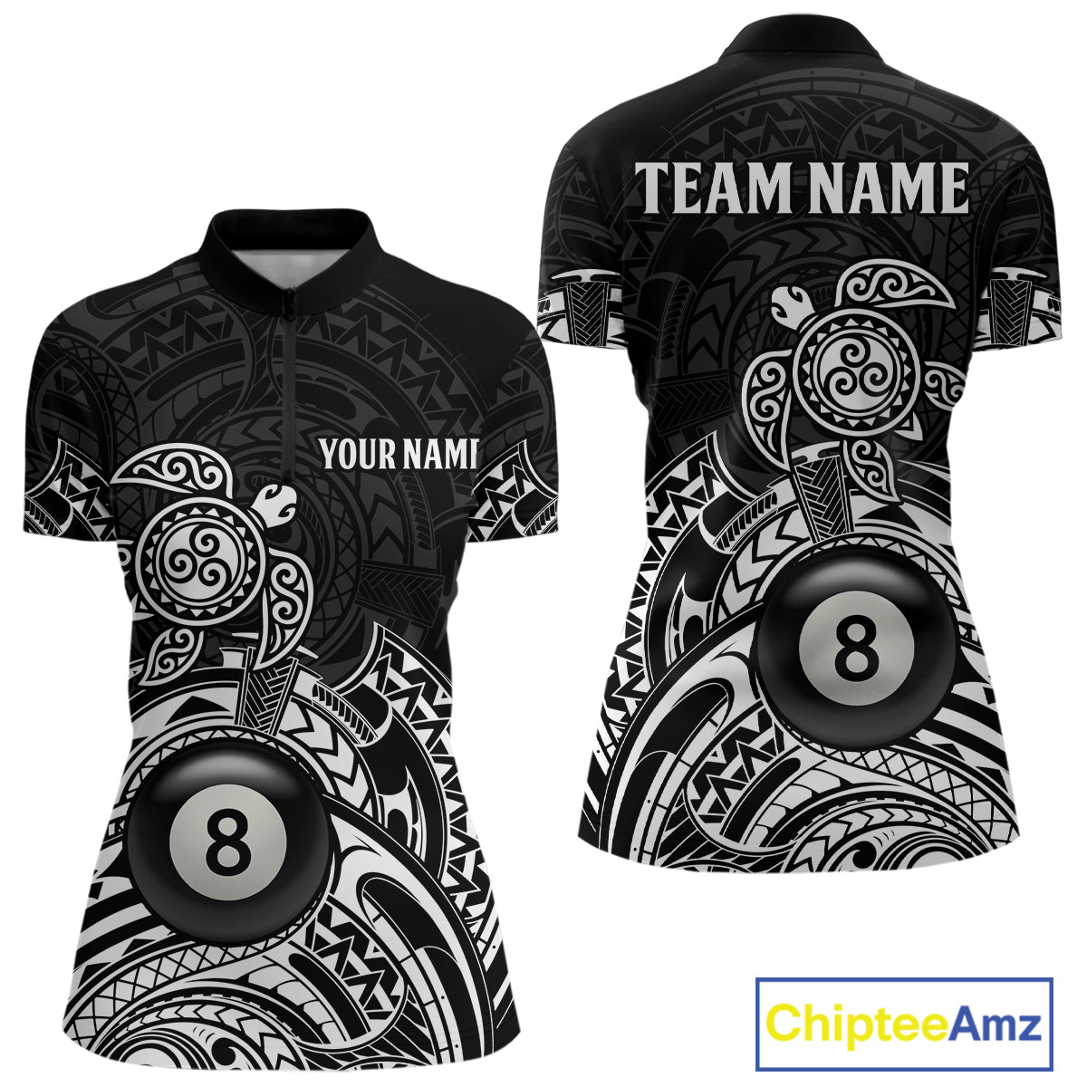Custom White Black Tribal Turtle Billiard Shirts For Women | 8 Ball Pool Team Jerseys TDM4690