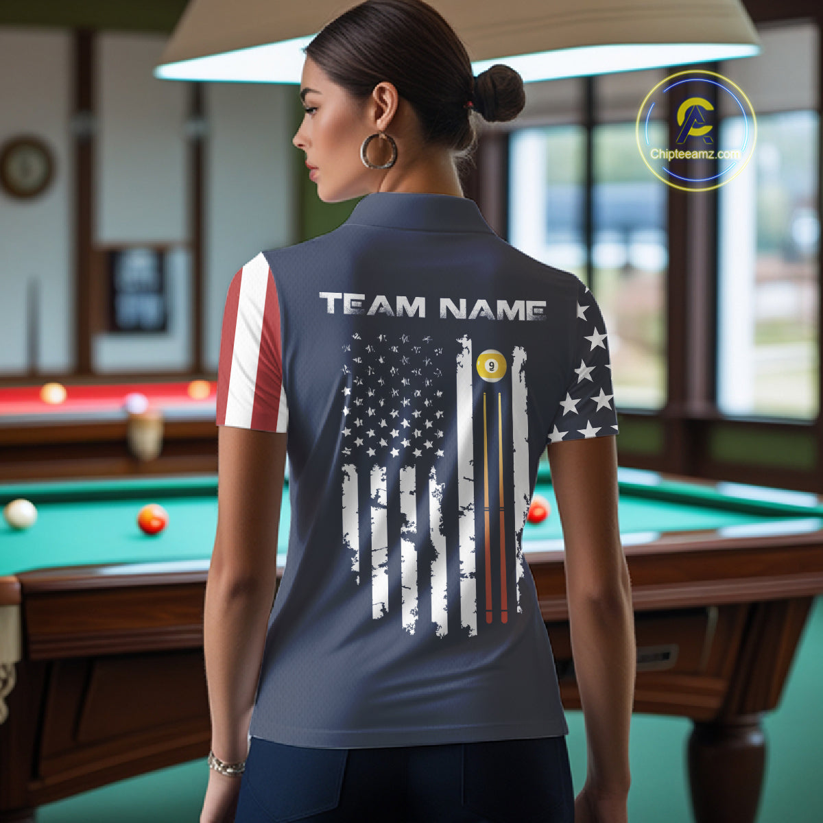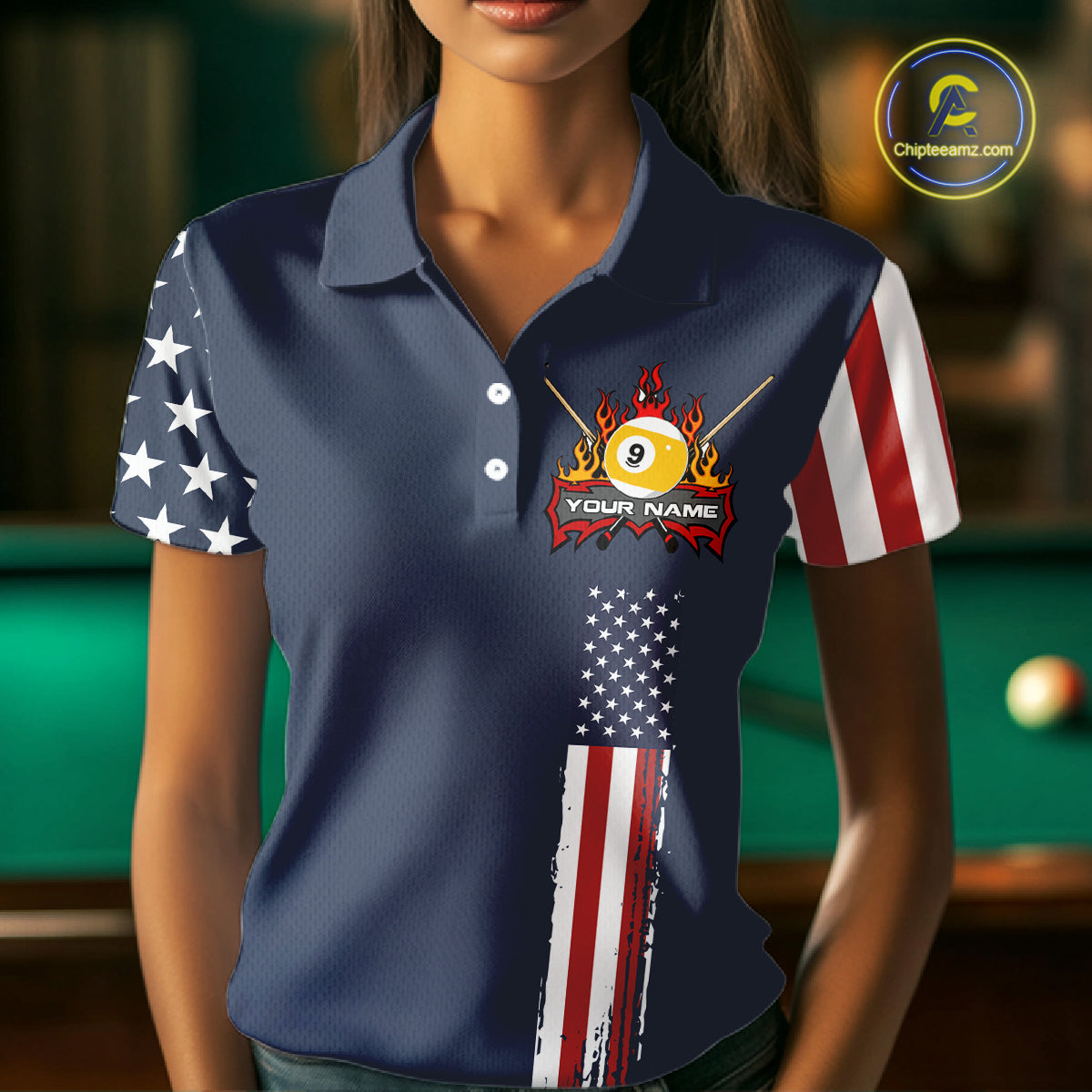 Personalized American Flag Blue Navy 9 Ball Pool Team Shirt For Women Custom Patriotic Billiard Shirt TDM4735