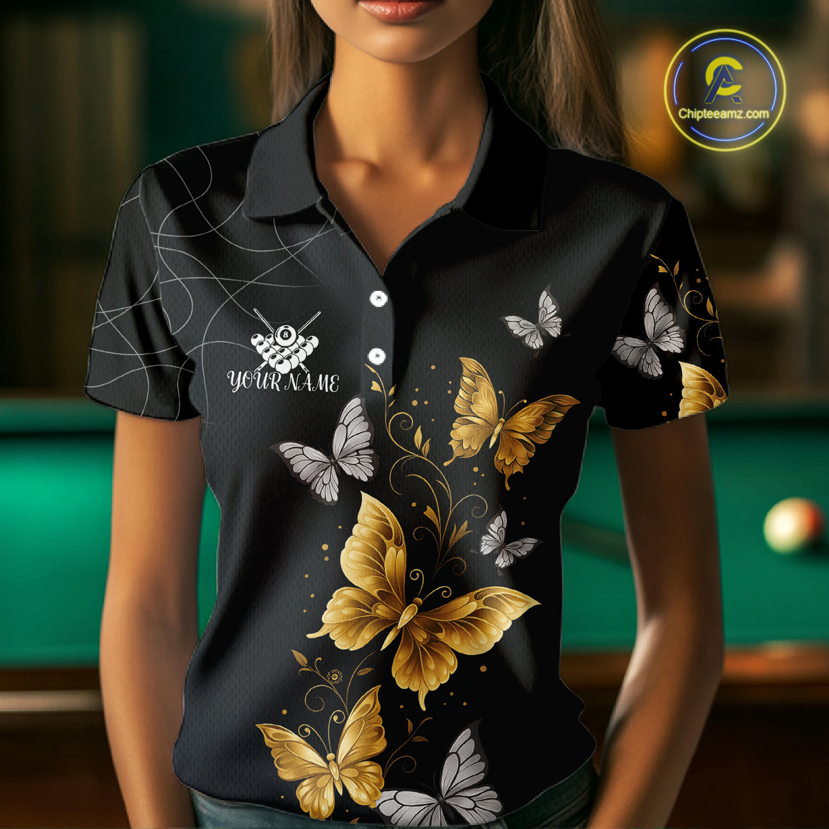 Personalized Golden 8 Ball Wings Butterflies Billiard Shirt For Women Custom Funny Pool Team Jersey TDM4777