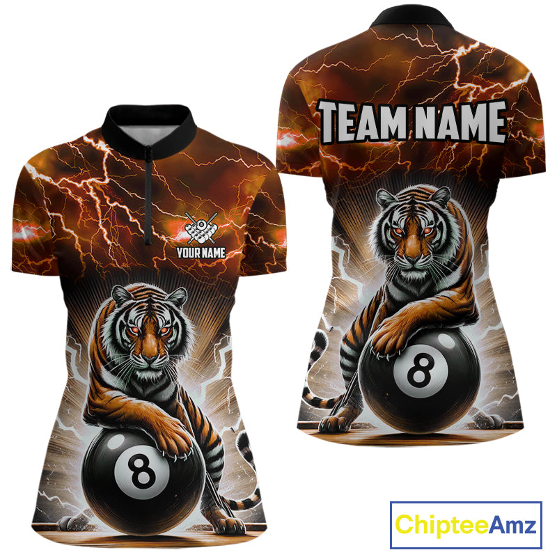 Lightning Thunder Tiger Custom Orange 8 Ball Pool Shirts For Women, Billiard Team League Jerseys TDM4814