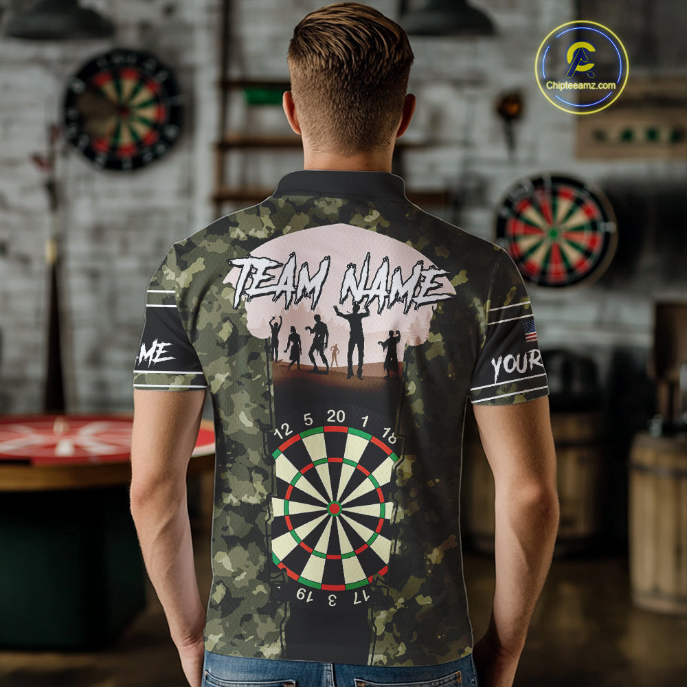 Camo US Flag Skull Skeleton Silhouette Dart Shirts For Men, Custom Dart Jerseys NYN0046