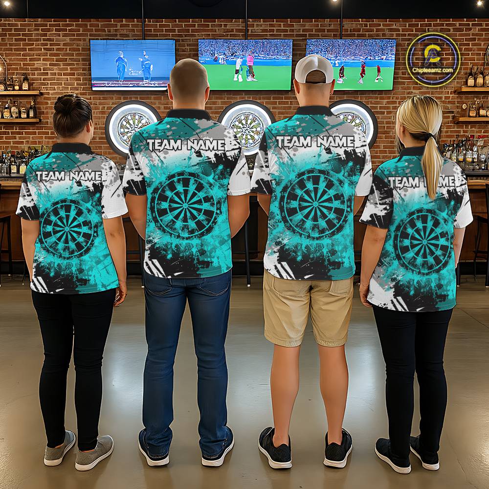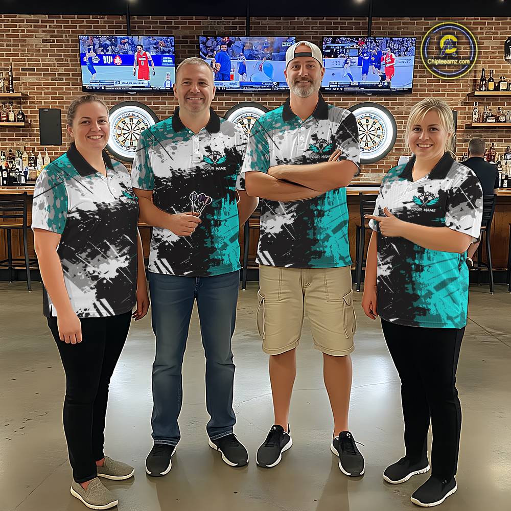 Turquoise Grunge Paint Splash Dart Shirts For Men Custom Darts Jersey Team Polo & Quarter Zip TDM5353