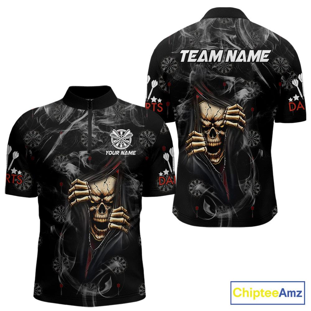Personalized Skull Smoke Pattern Darts Shirt For Men Custom Darts Jersey Team Polo & 1/4 Zip TDM5355