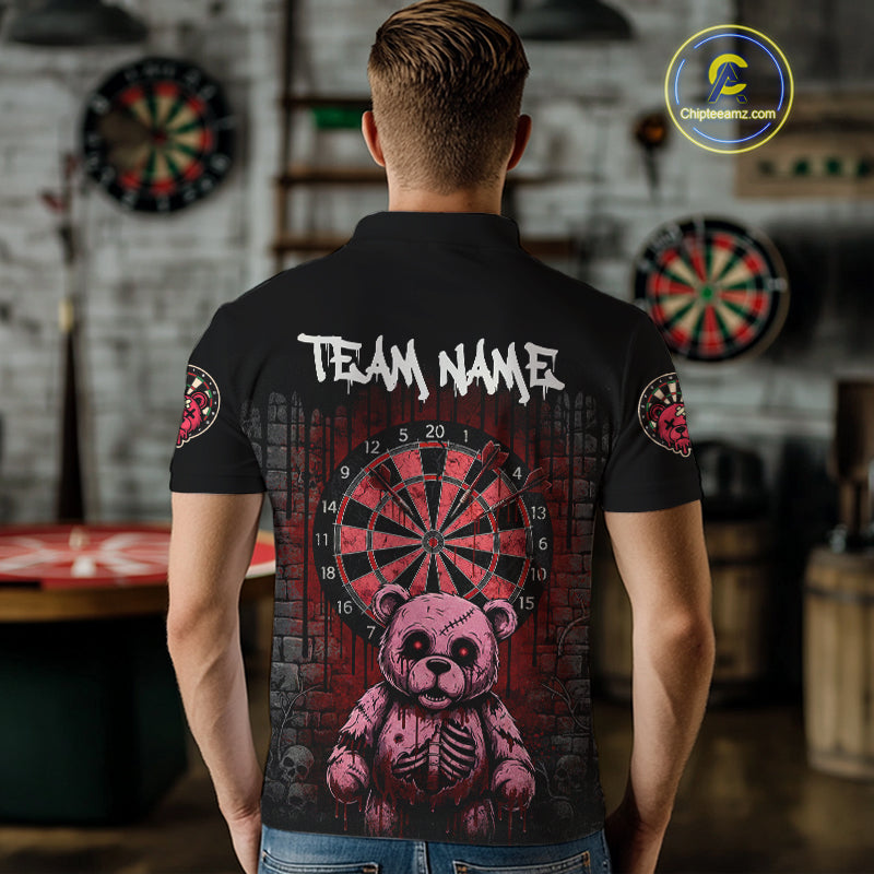 Black And Red Dripping Creepy Bear Grunge Custom Polo Dart Shirt For Men Dart Jerseys NYN2021