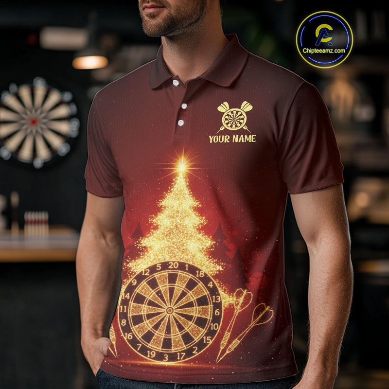 Red Snowflake Dartboard Christmas Custom Men Polo Dart Jerseys Xmas Dart League Shirt NYN2051