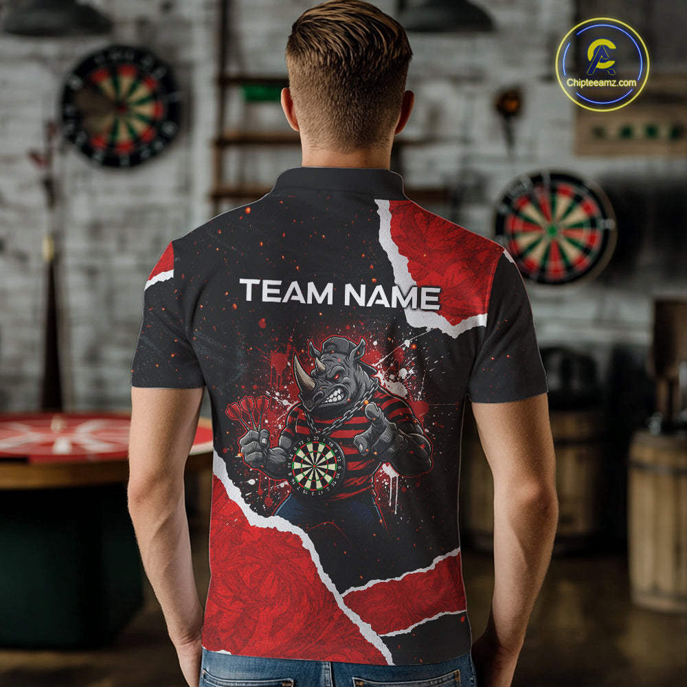 Black & Red Splatter Rhino Men Darts Polo Shirt Custom Funny Team Dart League Jerseys NYN2067