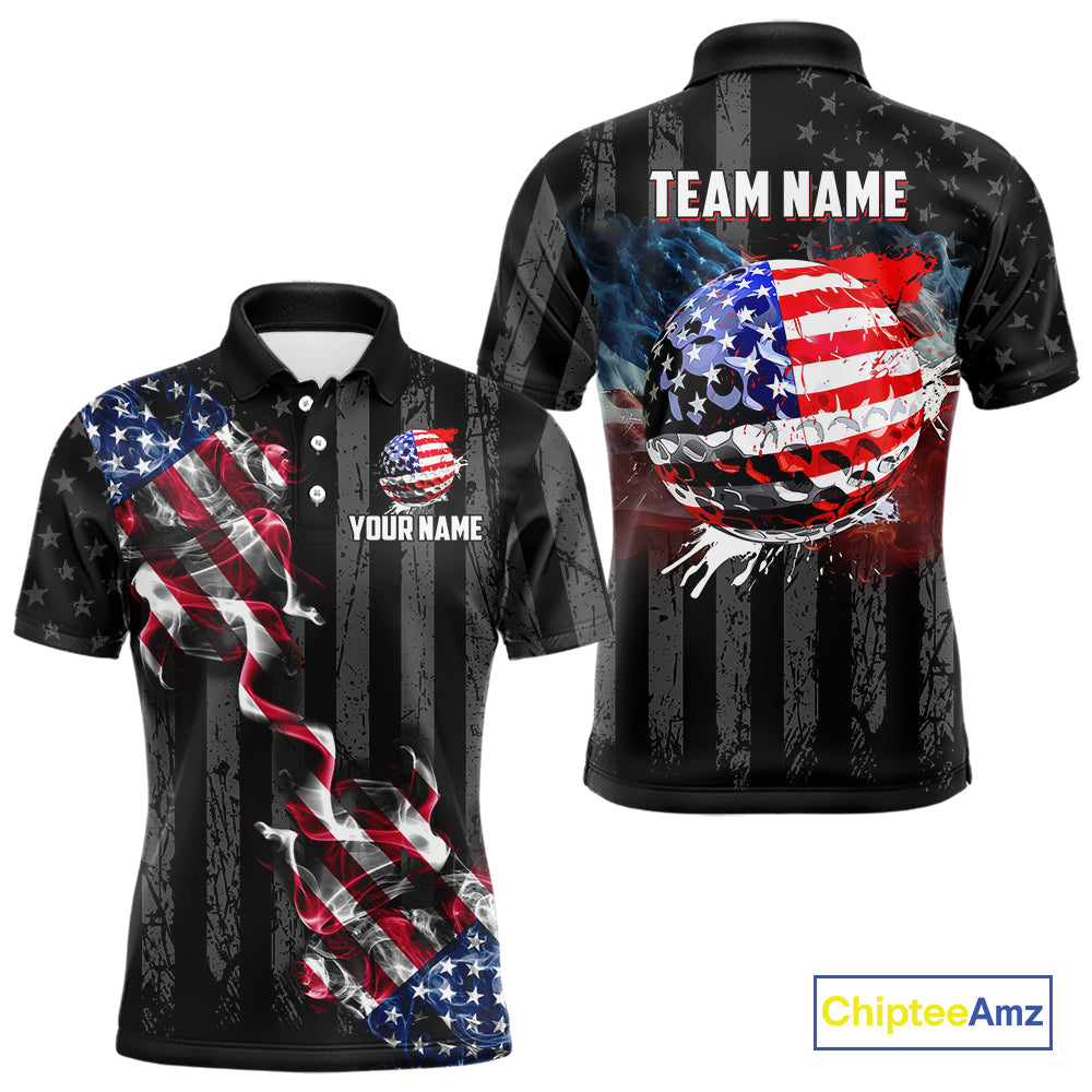 Black American flag smoke Mens golf polo shirts Custom Patriotic Team Golf attire NQS10615