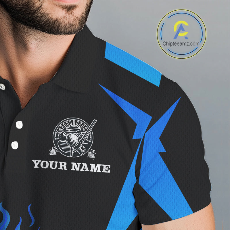 Black and Blue Flame Golf Ball Mens golf polo shirts custom golf attire for men, best golf gifts NQS10448