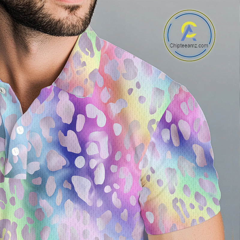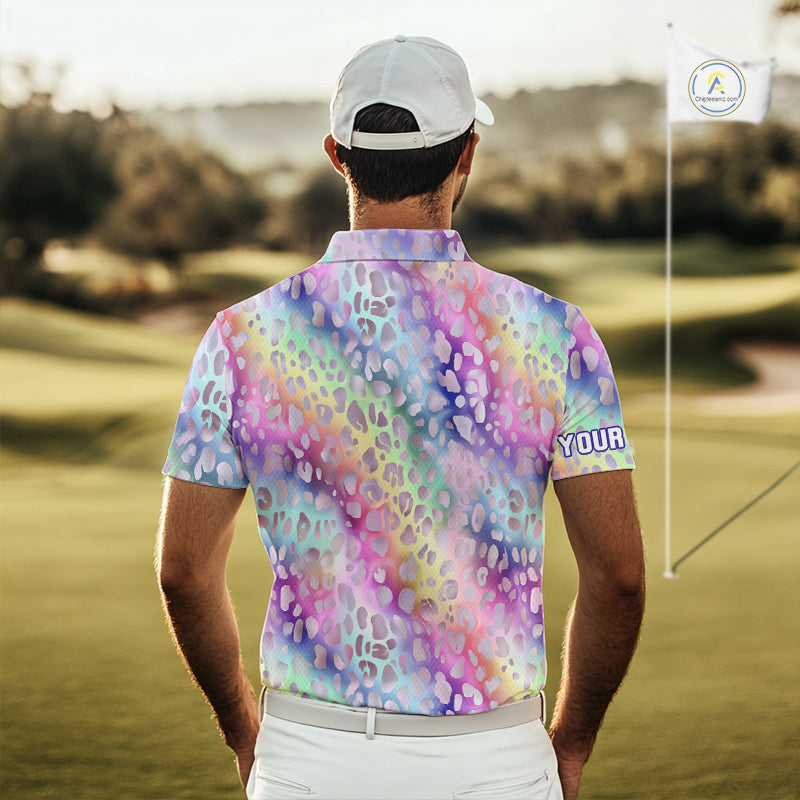 Colorful Neon Rainbow leopard pattern Mens Golf Polo Shirts Custom men's golf outfits, cool golf gift NQS10244
