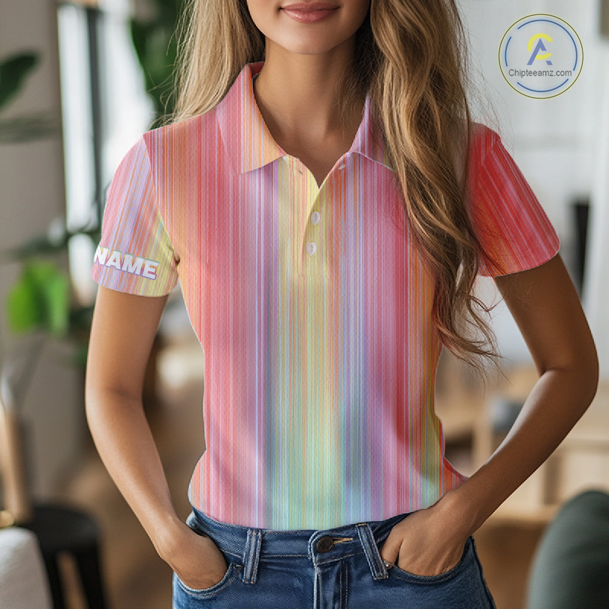 Colorful rainbow stripe pattern Women golf polo shirt custom best golf apparel for ladies NQS10406