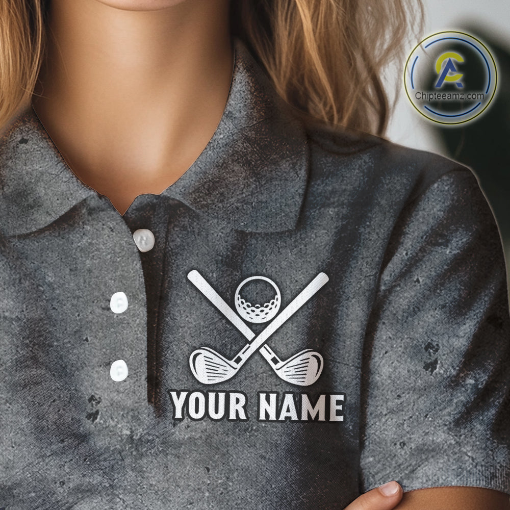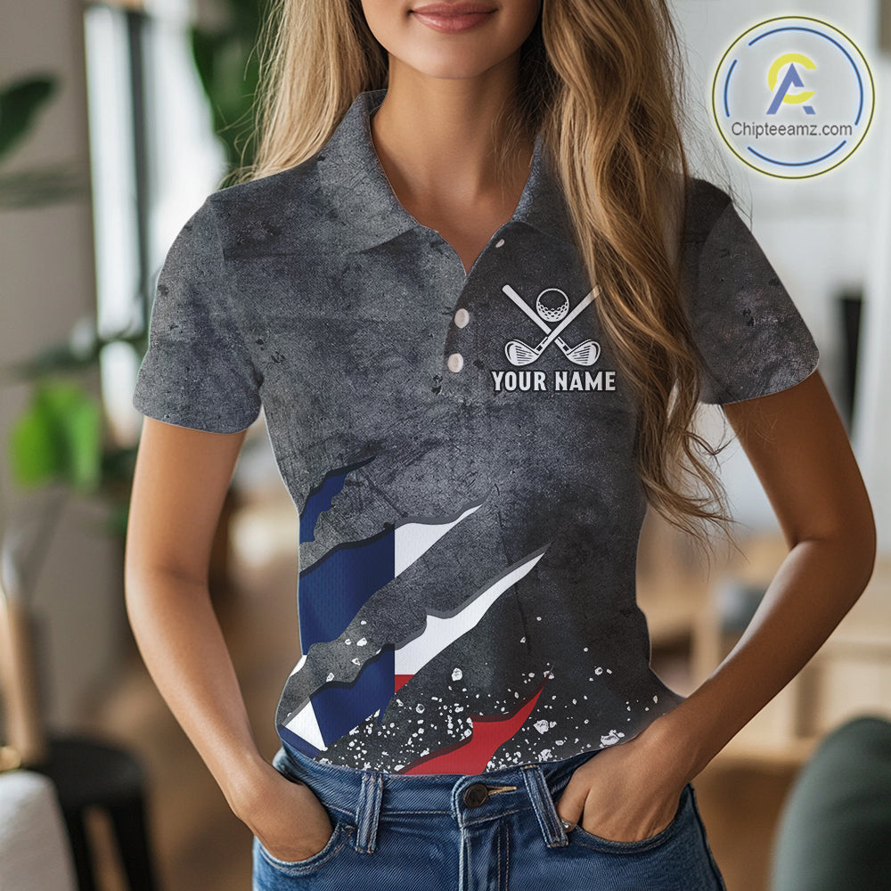 Gray Grunge Texas Flag Womens golf polo shirts Custom patriotic Golf attire for ladies NQS10580