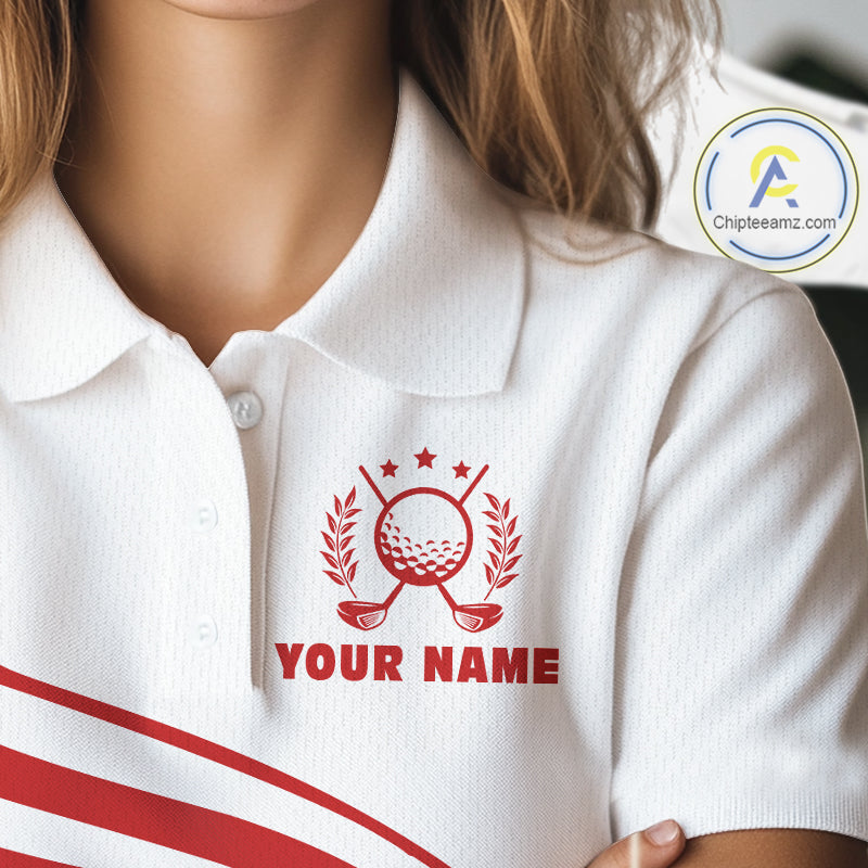 Personalized Christmas polo golf shirts for women custom white and red team ladies golf wear NQS11076