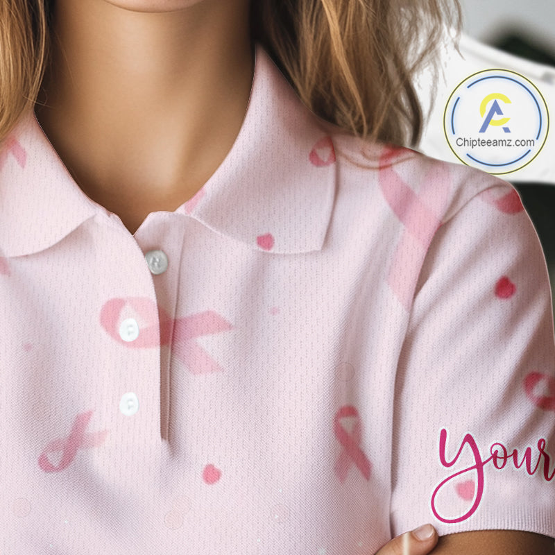 Pink glitter ribbons pattern Women golf polo shirt Custom Breast Cancer Awareness ladies golf outfit NQS10514