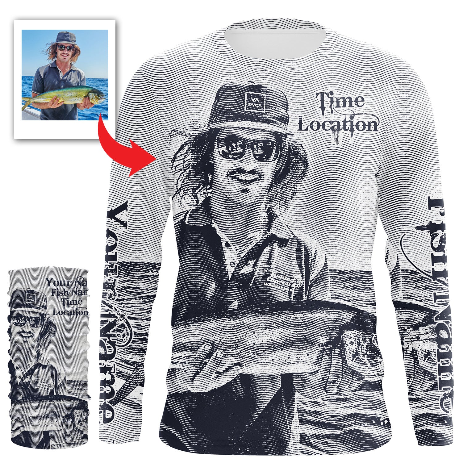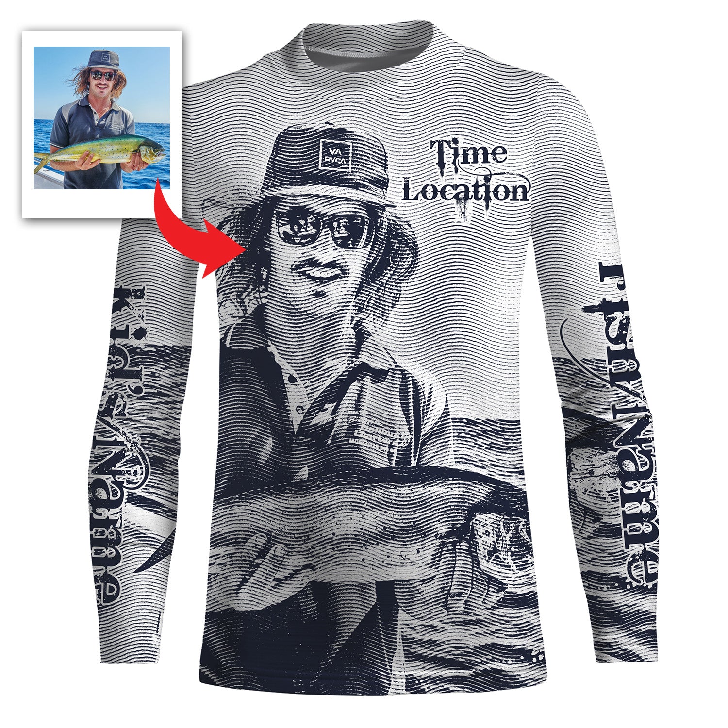 Fishing Shirt Custom Name, Image, Time, Location 3D UV protection Shirts UPF 30+ Fishing gift| Black - TMTS050