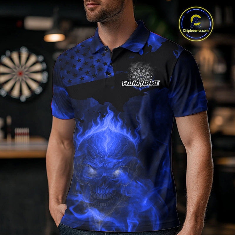 US Flag & Skull Custom Patriotic Blue Dart Polo Shirts For Men, Dart Team Jerseys NYN0787
