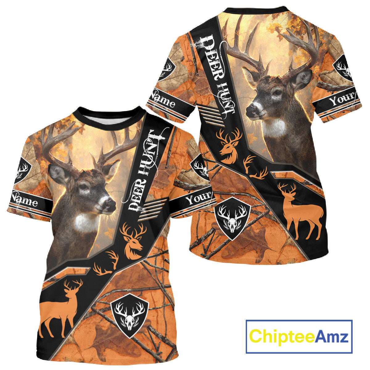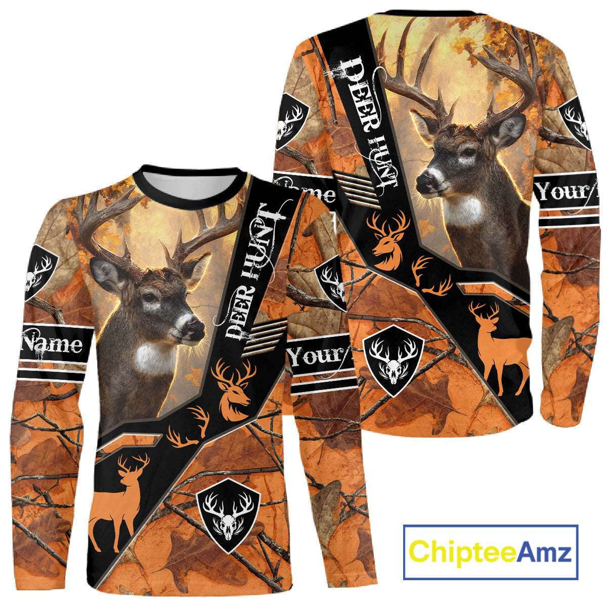 Deer Hunting Orange Camouflage 3D Printing Custom Name Shirts, Best Deer Hunting Shirts for Men NBT152