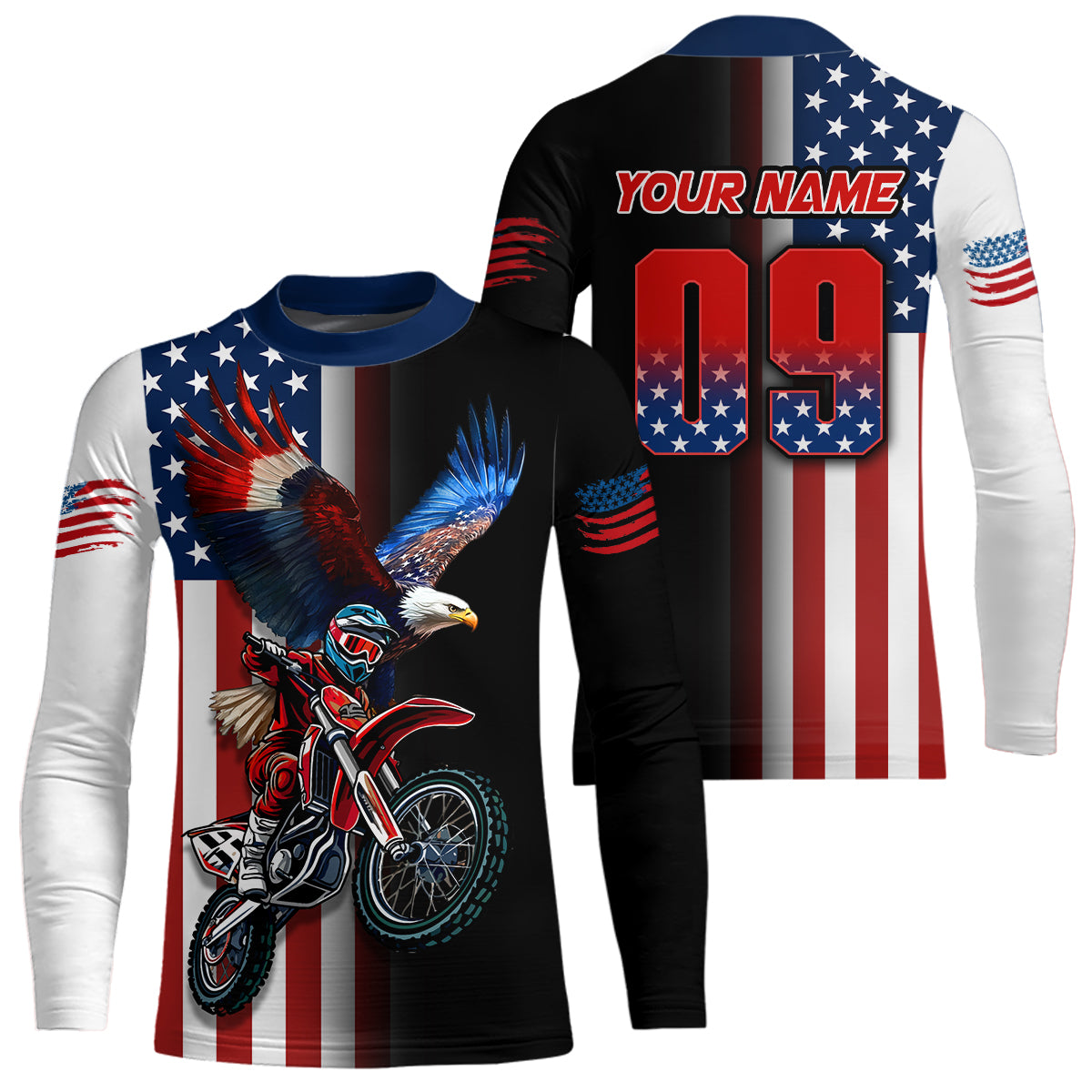 Eagle American Flag Motocross Jersey Dirt Bike Racing Shirts for Men Kid Women XM348