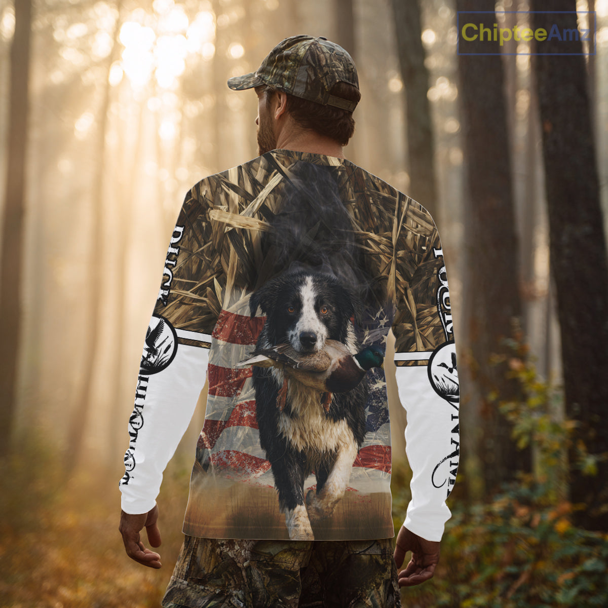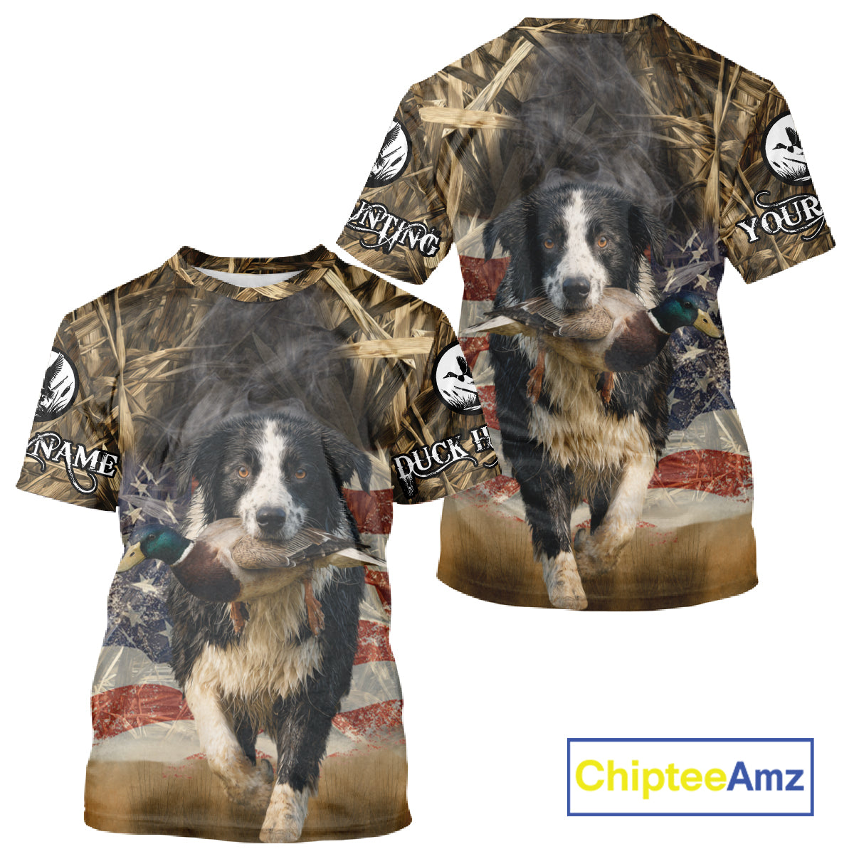Border Collies Duck Hunting USA Flag Customized Name All Over Printed Shirts, Hunting Gifts NBT153