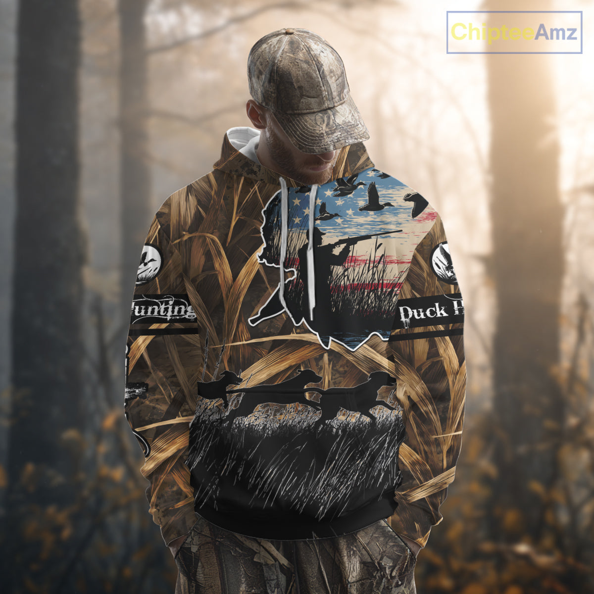 Custom Duck Hunting Camo USA Flag Custom Name 3D Printing Shirts, Duck Hunting Shirts NBT148
