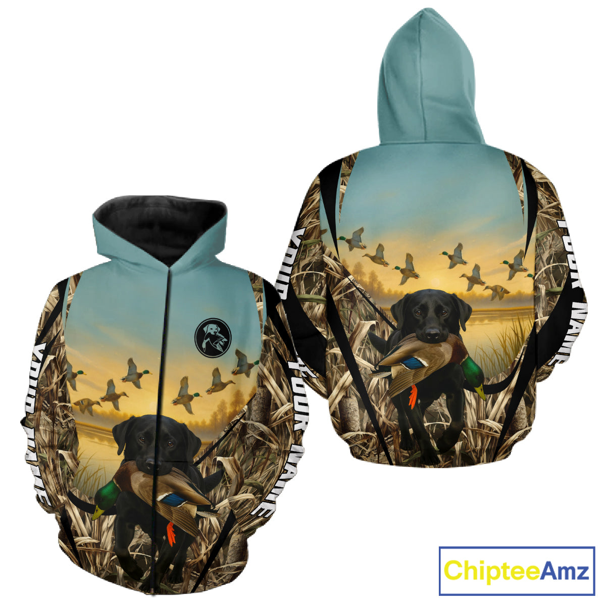 Duck Hunting Black Labrador 3D All Over Printed Camouflage Shirts, Duck Hunting Clothes NHT263
