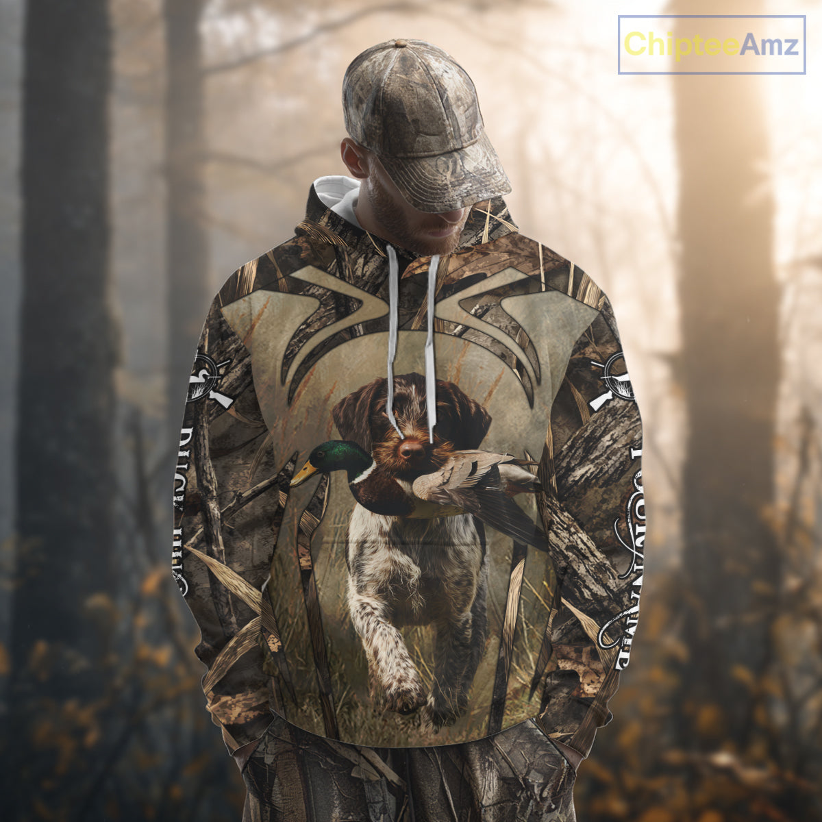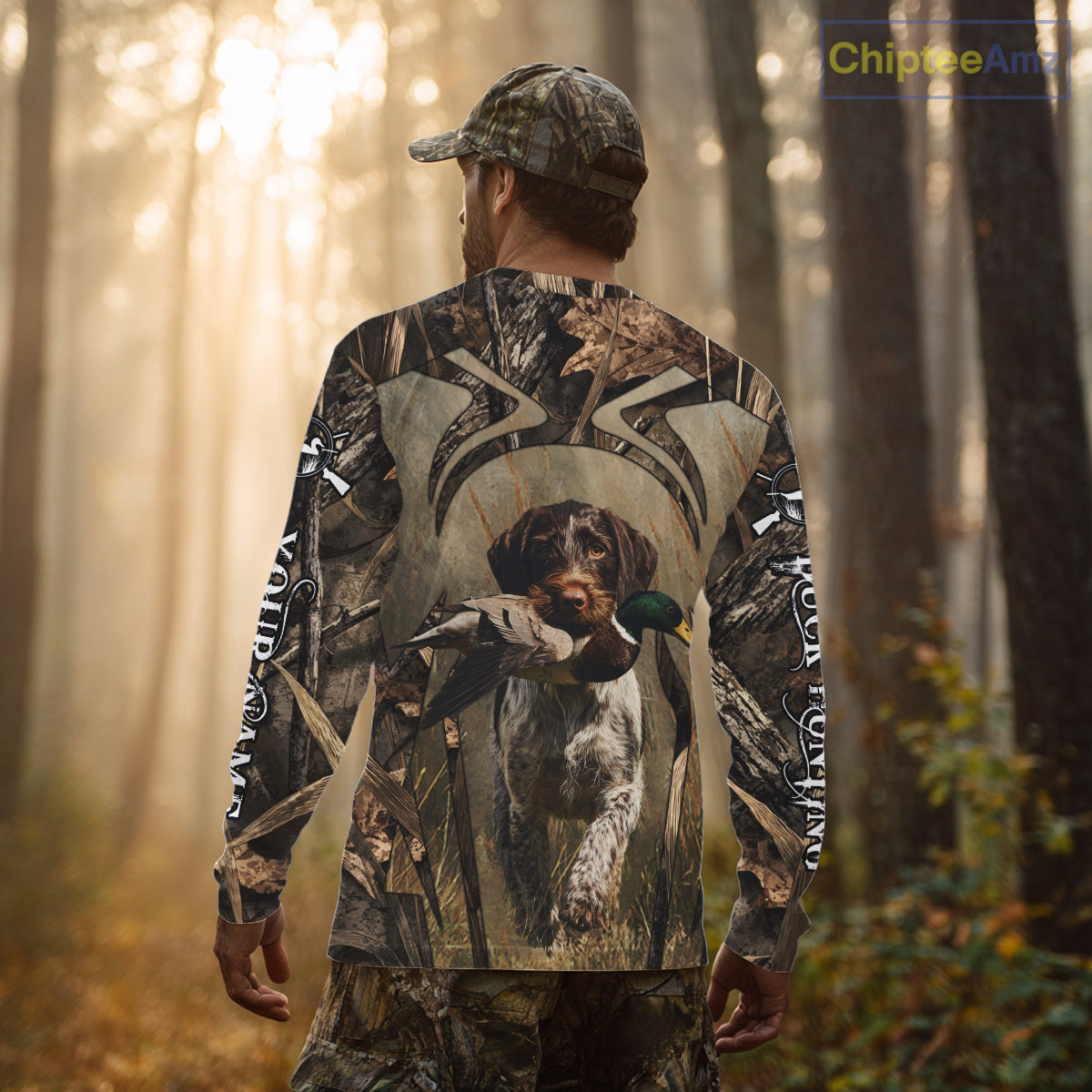 Mallard Duck Hunting German Wirehaired Pointer Dog Camouflage Shirts for Hunters, Duck Hunting Clothing NBT211