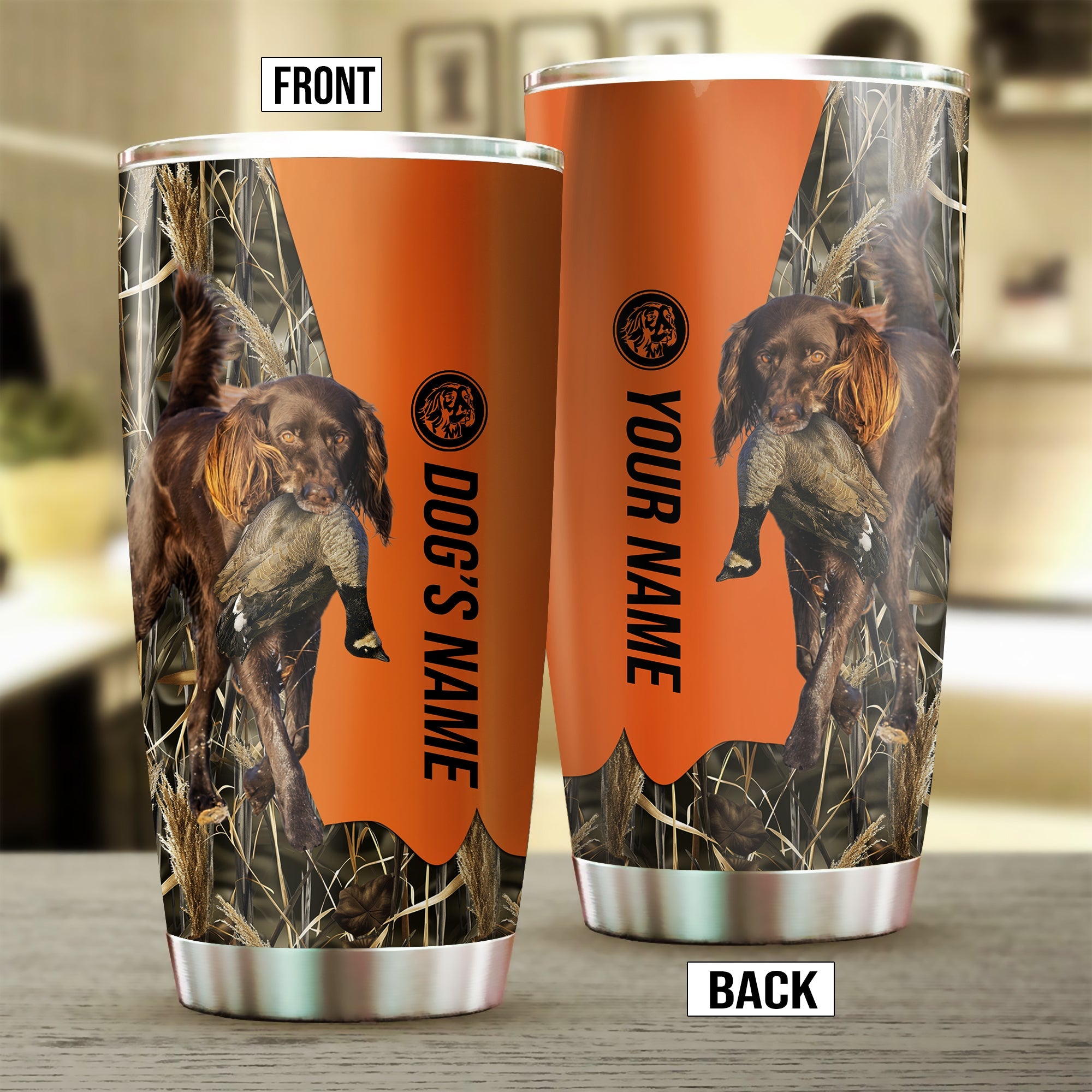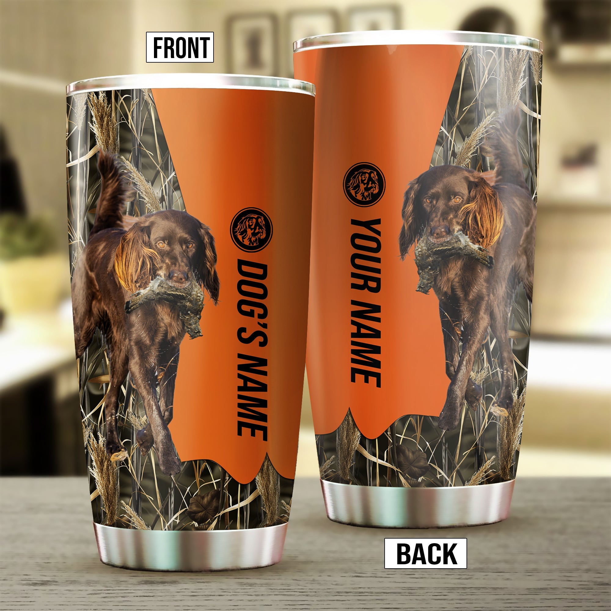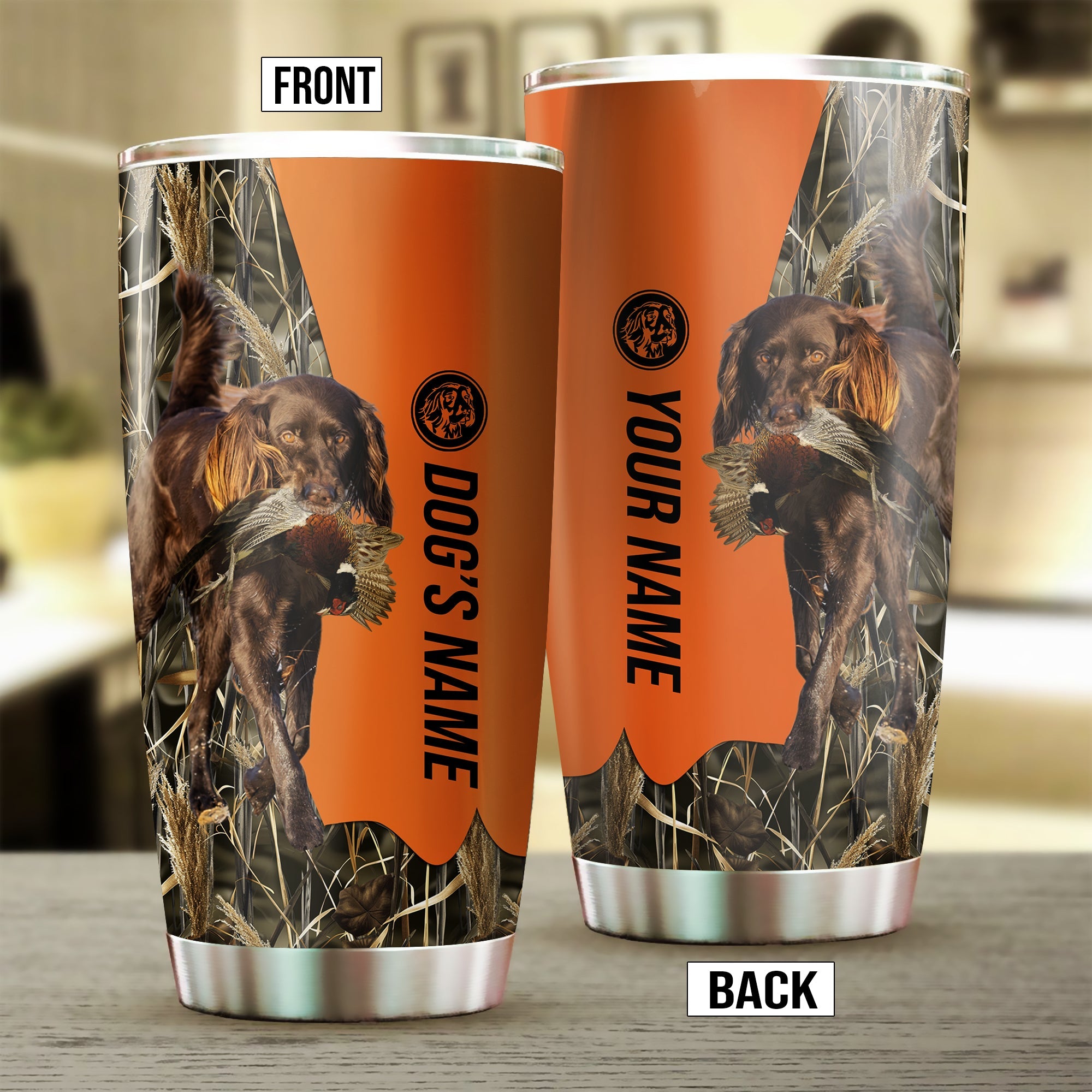 Deutsch Langhaar Birds & Deer shed Hunting Dog Custom name Stainless Steel Tumbler Cup FSD4472