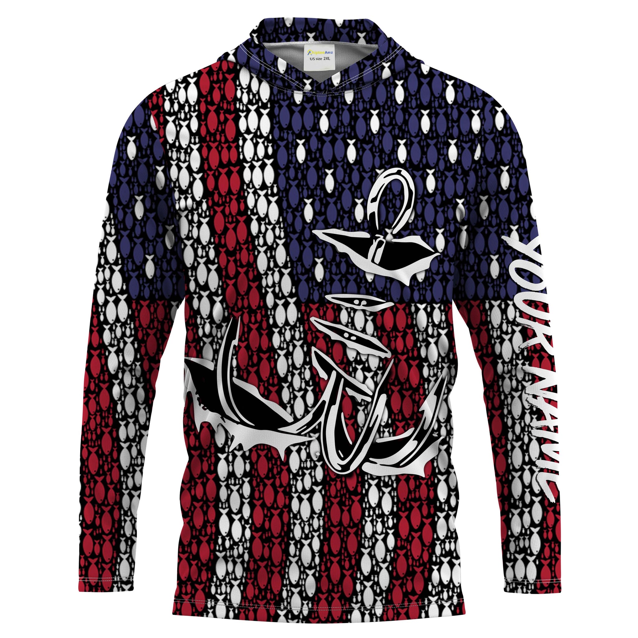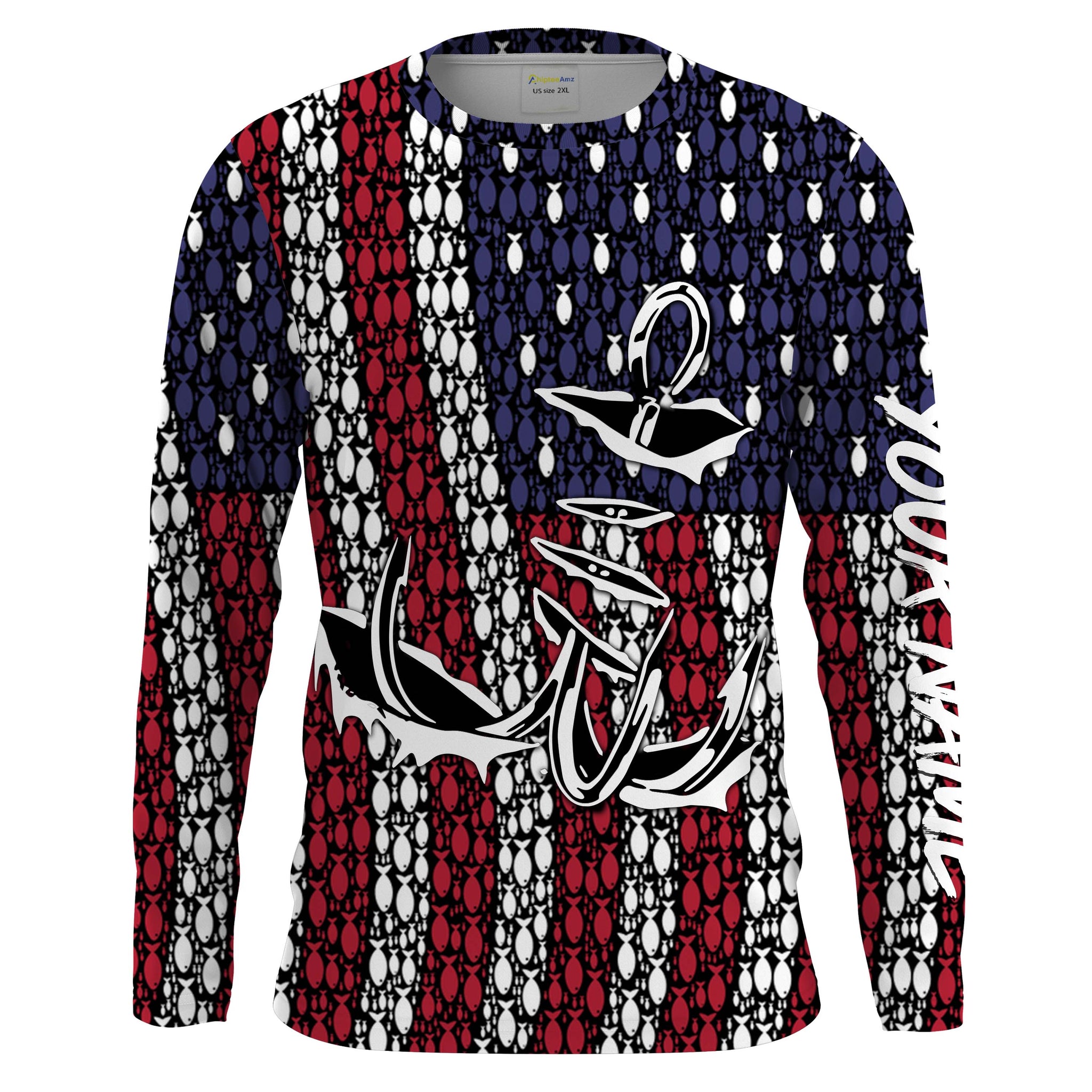 American Flag 3D Fish Hook Treble Hook Custom Name All Over Printed UV Protection Shirts Fishing Apparel Patriotic Gift FSD2015