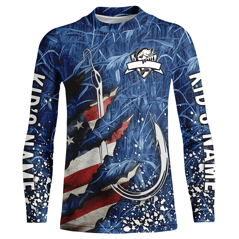 American flag fish hook blue camo fishing custom sun protection performance long sleeve fishing shirts NQS4307