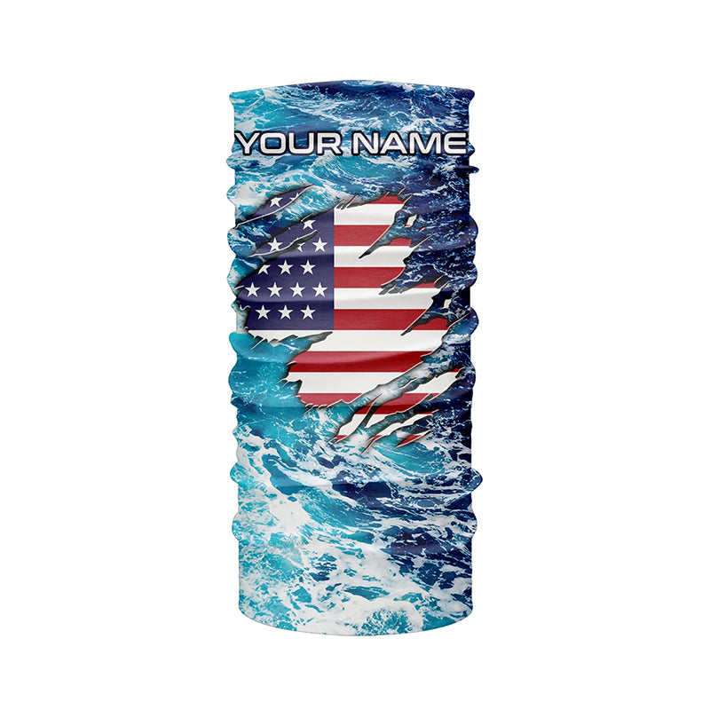 Blue sea wave ocean camo American flag patriot shirt Custom sun protection fishing long sleeve shirts NQS5429
