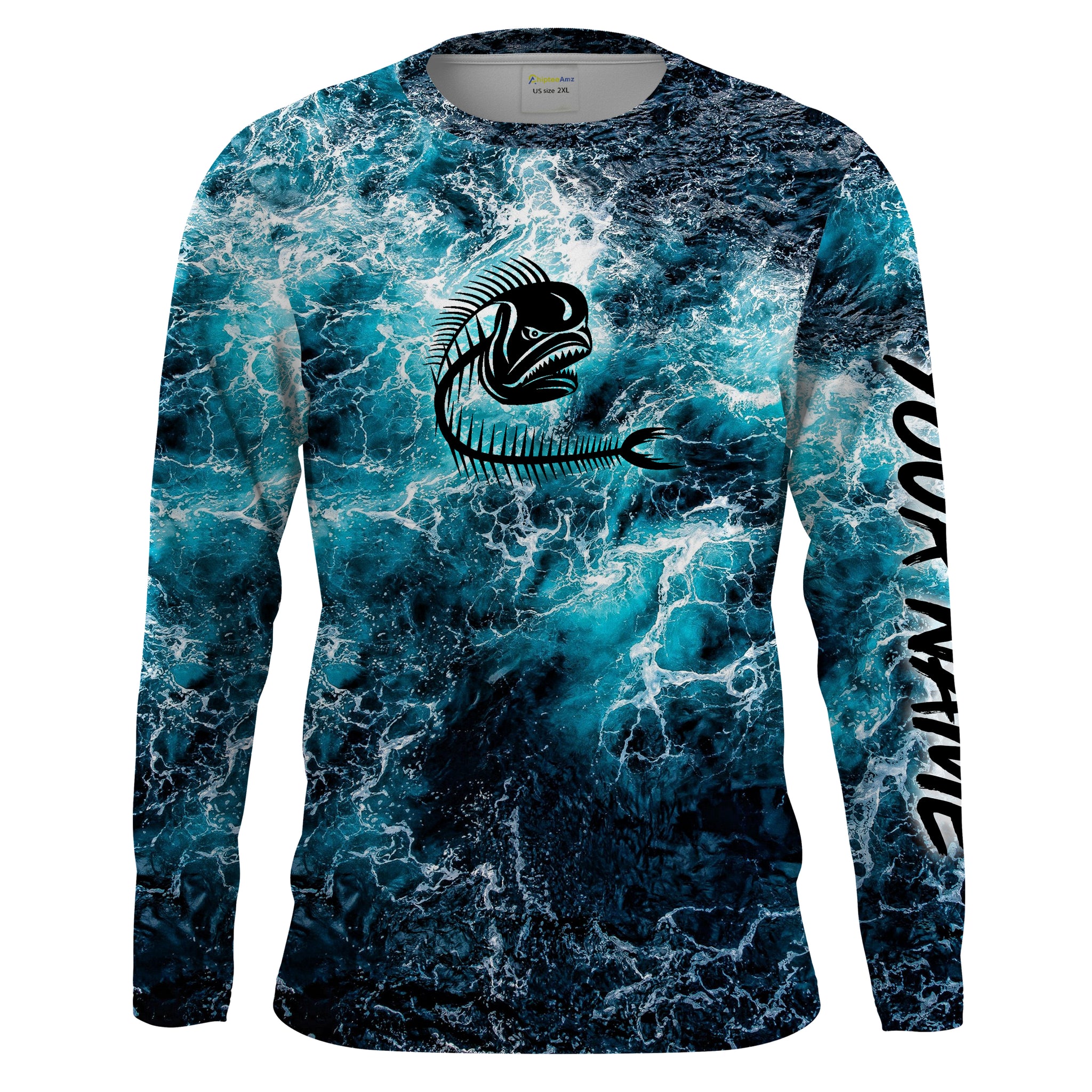 Custom blue ocean Mahi mahi fish bone Saltwater Long sleeves Sea wave camo Fishing Shirts NQS2097